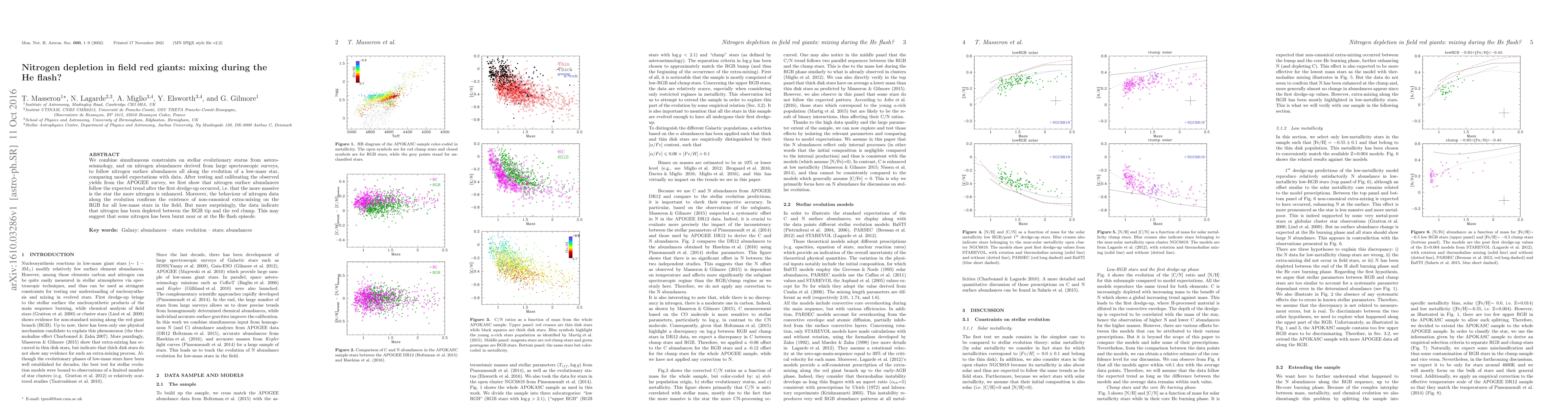 We combine simultaneous constraints on stellar evolutionary status from asteroseismology, and on nitrogen abundances derived from large spectroscopic surveys, to follow nitrogen surface abundances all along the evolution of a low-mass star, comparing model expectations with data. After testing and calibrating the observed yields from the APOGEE survey, we first show that nitrogen surface abundances follow the expected trend after the first dredge-up occurred, i.e. that the more massive is the star the more nitrogen is enhanced. Moreover, the behaviour of nitrogen data along the evolution confirms the existence of non-canonical extra-mixing on the RGB for all low-mass stars in the field. But more surprisingly, the data indicate that nitrogen has been depleted between the RGB tip and the red clump. This may suggest that some nitrogen has been burnt near or at the He flash episode.