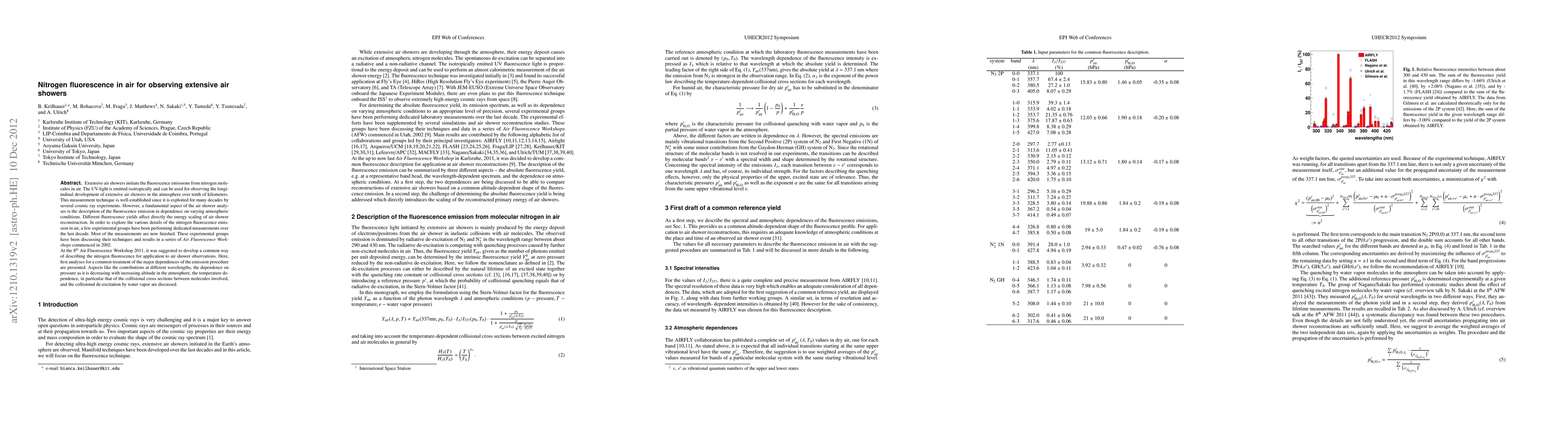 This paper discusses the fluorescence emissions from nitrogen molecules in air that occur during extensive air showers, a technique used to observe the development of these showers over large atmospheric distances. It explores the various factors affecting nitrogen fluorescence, including atmospheric pressure, temperature, and water vapor, to improve the accuracy of air shower energy scaling.
