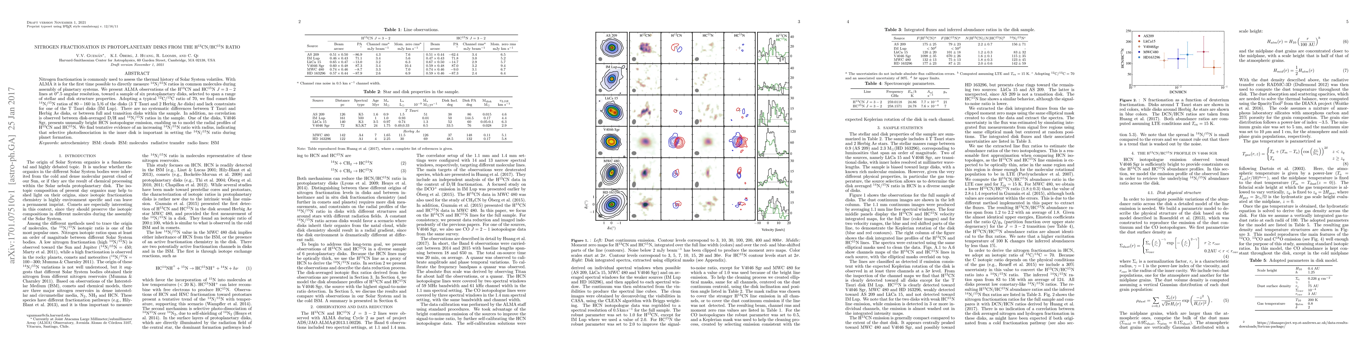 This study uses ALMA observations to measure nitrogen isotope ratios in six protoplanetary disks, finding comet-like 14N/15N ratios in most disks. It suggests that selective photodissociation in the inner disk may influence nitrogen fractionation, with one disk showing a possible radial gradient in the ratio.