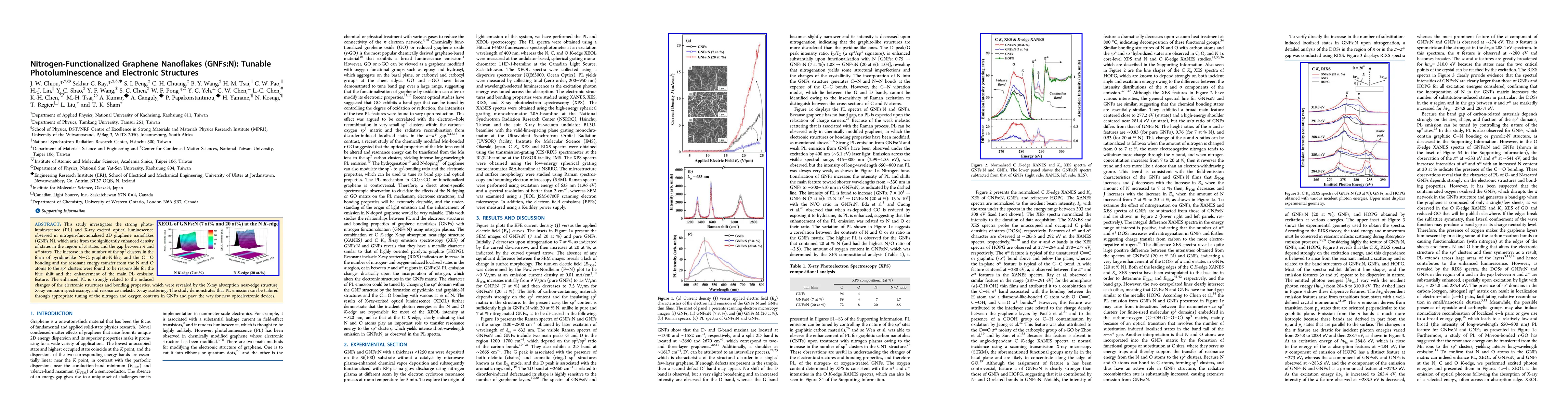 This study explores nitrogen-functionalized graphene nanoflakes (GNFs:N) with tunable photoluminescence due to enhanced density of states and changes in electronic structures, revealing potential for optoelectronic applications. Tailoring nitrogen and oxygen content in GNFs allows for precise control over photoluminescence emission.