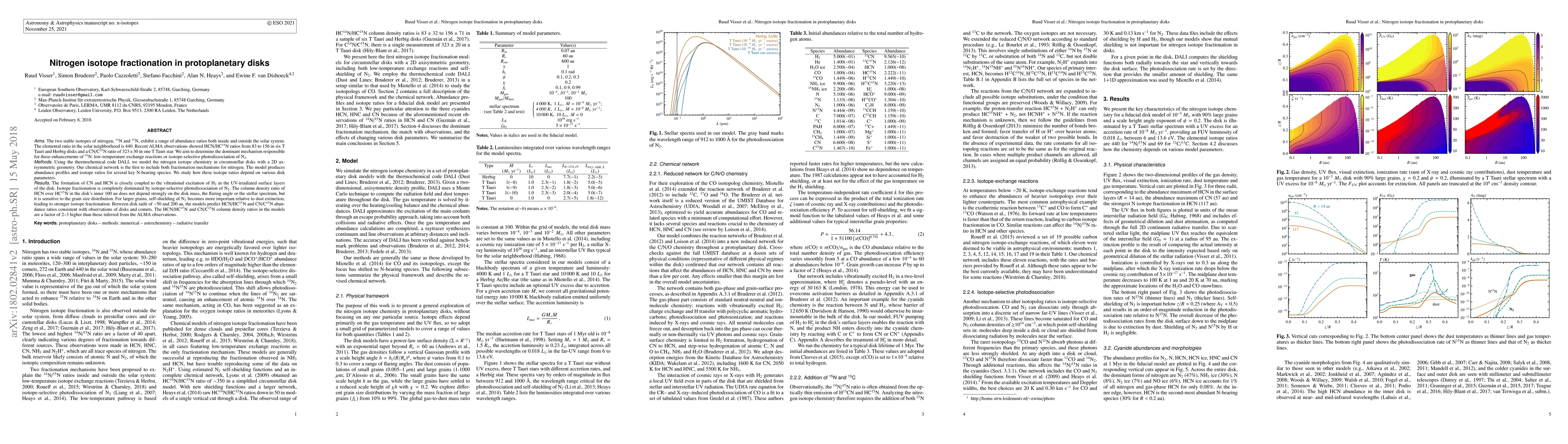 This paper investigates nitrogen isotope fractionation in protoplanetary disks, finding that isotope-selective photodissociation of N2, rather than low-temperature exchange reactions, dominates the observed enhancements of 15N. The study uses a thermochemical model to predict isotope ratios, showing that larger grains lead to stronger fractionation and that observed ratios are consistent with models between disk radii of ~50 and 200 au.