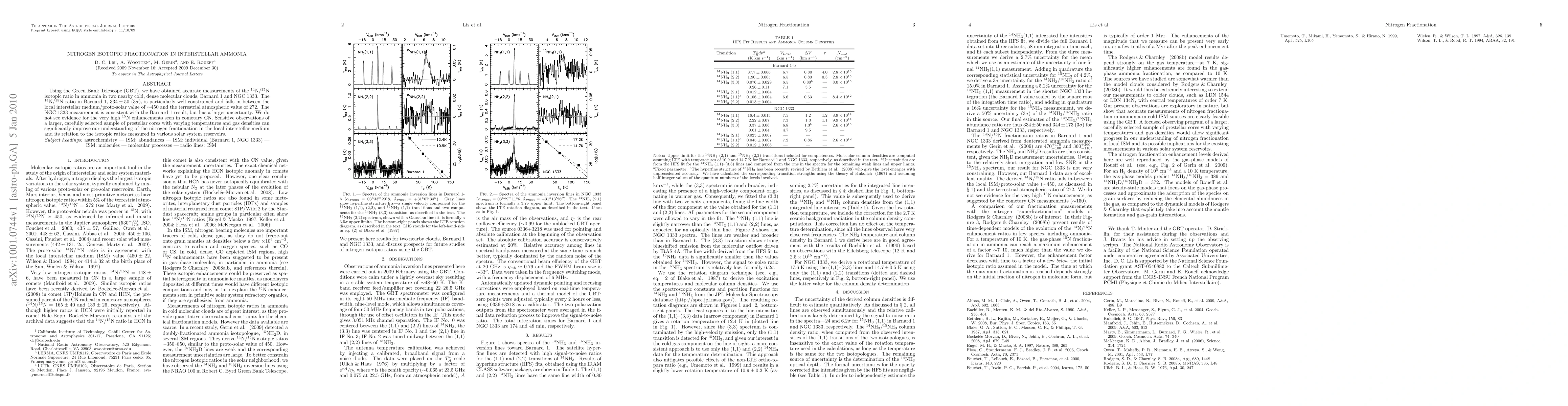 Using the Green Bank Telescope (GBT), we have obtained accurate measurements of the $^{14}$N/$^{15}$N isotopic ratio in ammonia in two nearby cold, dense molecular clouds, Barnard~1 and NGC 1333. The $^{14}$N/$^{15}$N ratio in Barnard~1, $334 \pm 50$ (3$\sigma$), is particularly well constrained and falls in between the local interstellar medium/proto-solar value of $\sim 450$ and the terrestrial atmospheric value of 272. The NGC 1333 measurement is consistent with the Barnard~1 result, but has a larger uncertainty. We do not see evidence for the very high $^{15}$N enhancements seen in cometary CN. Sensitive observations of a larger, carefully selected sample of prestellar cores with varying temperatures and gas densities can significantly improve our understanding of the nitrogen fractionation in the local interstellar medium and its relation to the isotopic ratios measured in various solar system reservoirs.