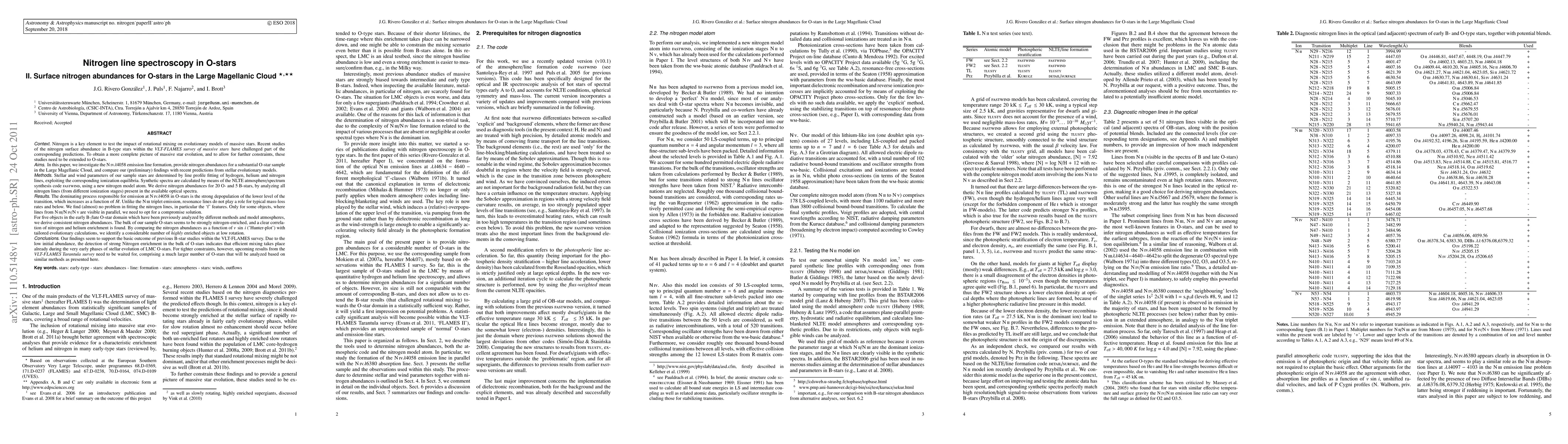 This paper investigates nitrogen abundances in O-type stars within the Large Magellanic Cloud (LMC) using NIV lambda4058 emission lines, revealing strong nitrogen enrichment in most stars. The study finds a correlation between nitrogen and helium enrichment, suggesting efficient mixing during early stellar evolution.