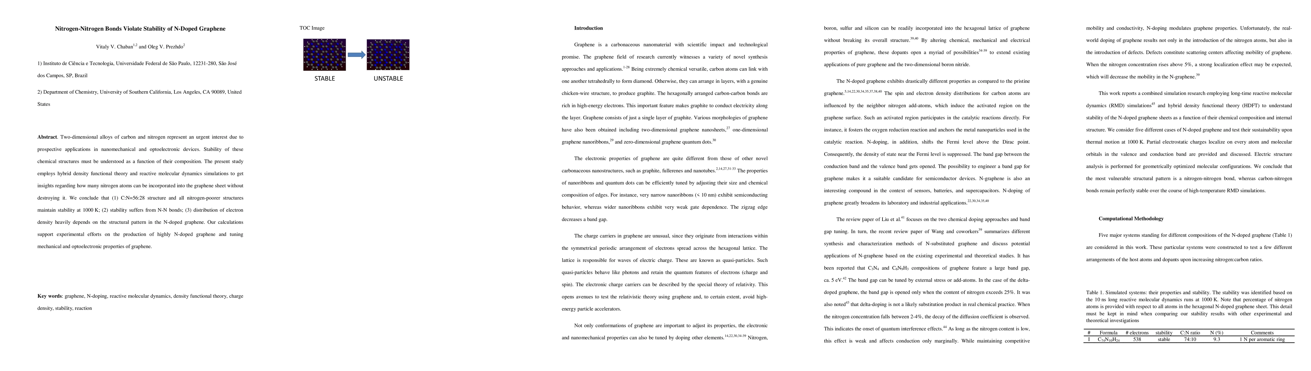 This study reveals that N-doped graphene remains stable up to a C:N ratio of 56:28, but stability decreases with nitrogen-nitrogen (N-N) bonds. Computational simulations suggest that electron density distribution in N-doped graphene is significantly influenced by its structural pattern, informing efforts to optimize graphene's mechanical and optoelectronic properties.