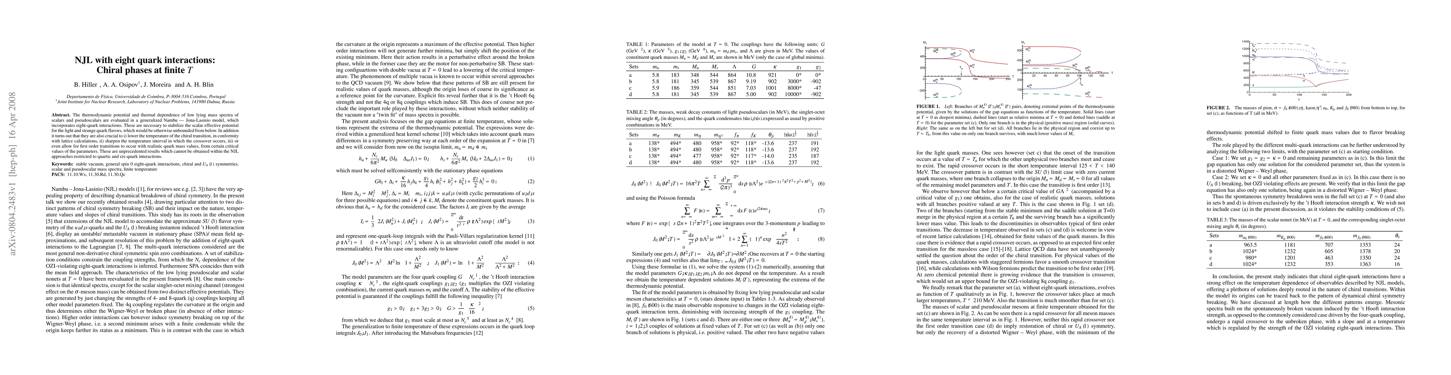 The thermodynamic potential and thermal dependence of low lying mass spectra of scalars and pseudoscalars are evaluated in a generalized Nambu -- Jona-Lasinio model, which incorporates eight-quark interactions. These are necessary to stabilize the scalar effective potential for the light and strange quark flavors, which would be otherwise unbounded from below. In addition it turns out that they are also crucial to i) lower the temperature of the chiral transition, in conformity with lattice calculations, ii) sharpen the temperature interval in which the crossover occurs, iii) or even allow for first order transitions to occur with realistic quark mass values, from certain critical values of the parameters. These are unprecedented results which cannot be obtained within the NJL approaches restricted to quartic and six-quark interactions.
