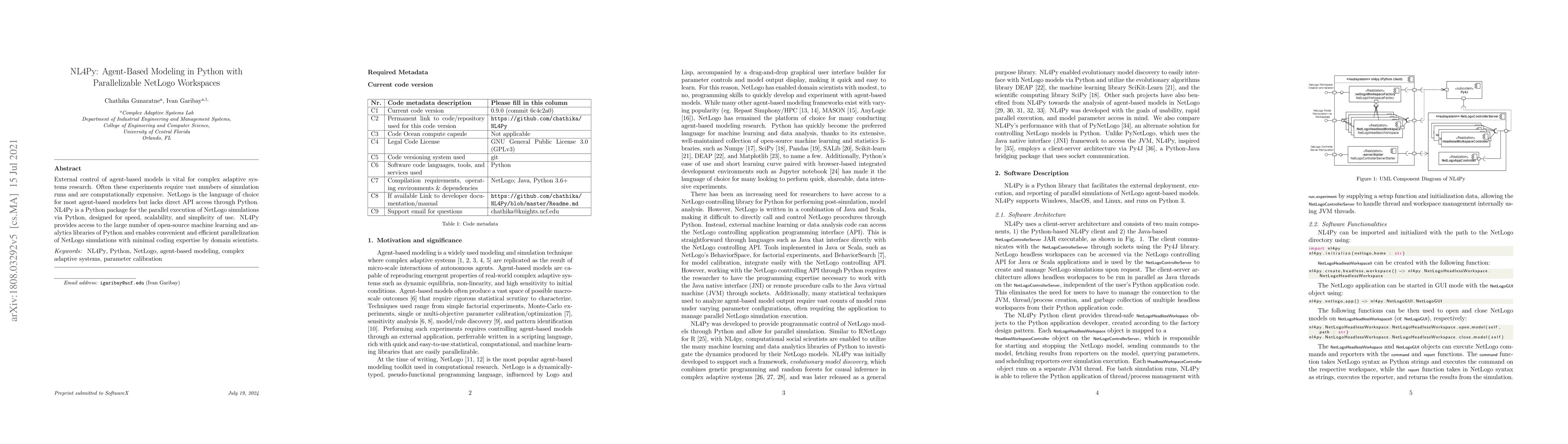 NL4Py is a Python package that facilitates parallel execution of NetLogo simulations, combining the strengths of both languages for complex adaptive systems research. It aims to simplify and speed up computationally intensive agent-based modeling experiments by leveraging Python's extensive libraries and parallelization capabilities.