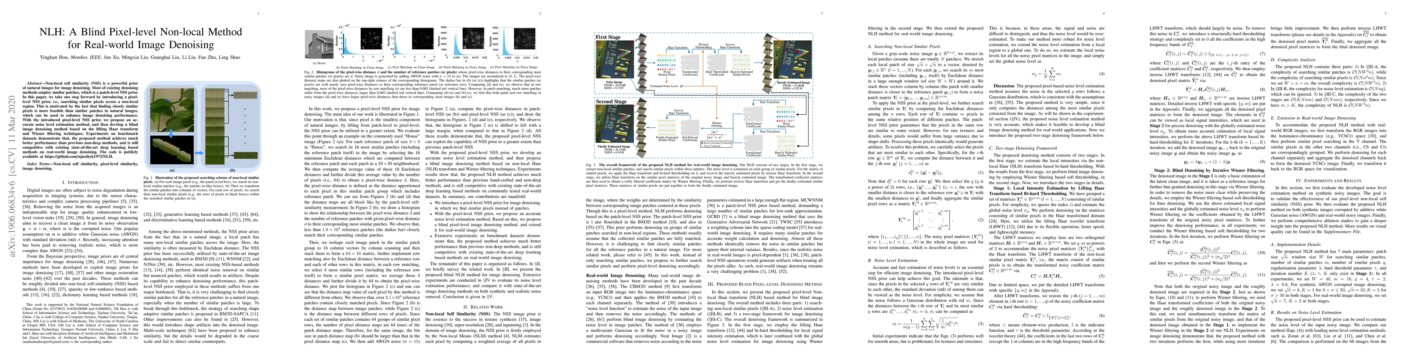 This paper introduces NLH, a blind pixel-level non-local method for real-world image denoising, leveraging pixel-level non-local self-similarity to enhance denoising performance. The proposed method estimates noise levels accurately and outperforms previous non-deep methods, while remaining competitive with state-of-the-art deep learning approaches.