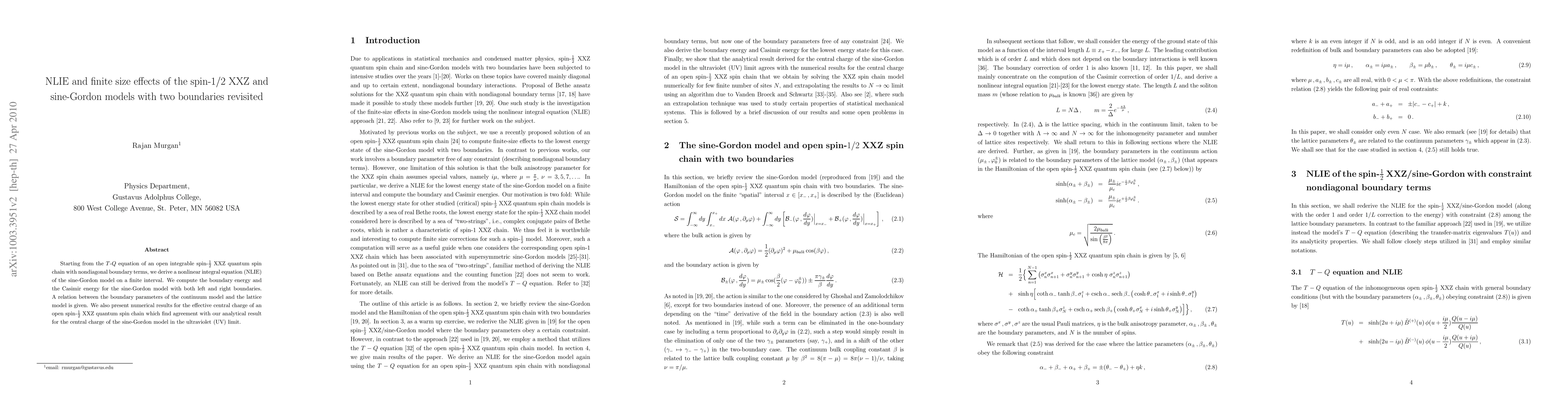 This paper derives a nonlinear integral equation (NLIE) from the T-Q equation for an open spin-1/2 XXZ quantum spin chain, and computes the boundary and Casimir energies for the sine-Gordon model with two boundaries. It establishes a connection between the boundary parameters of the continuum and lattice models, and confirms analytical results for the central charge with numerical findings.