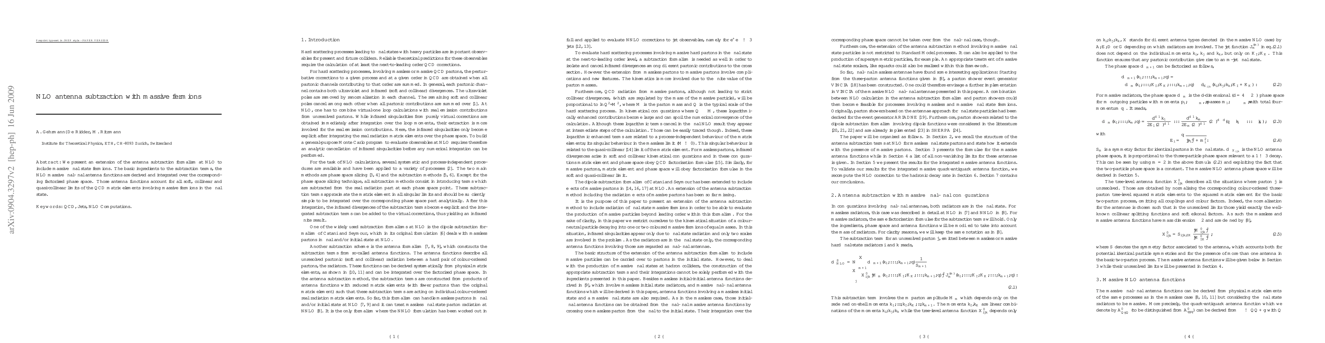 This paper extends the antenna subtraction formalism to next-leading order (NLO) for processes involving massive final state fermions, deriving and integrating NLO massive final-final antenna functions to account for soft, collinear, and quasi-collinear limits in QCD matrix elements.