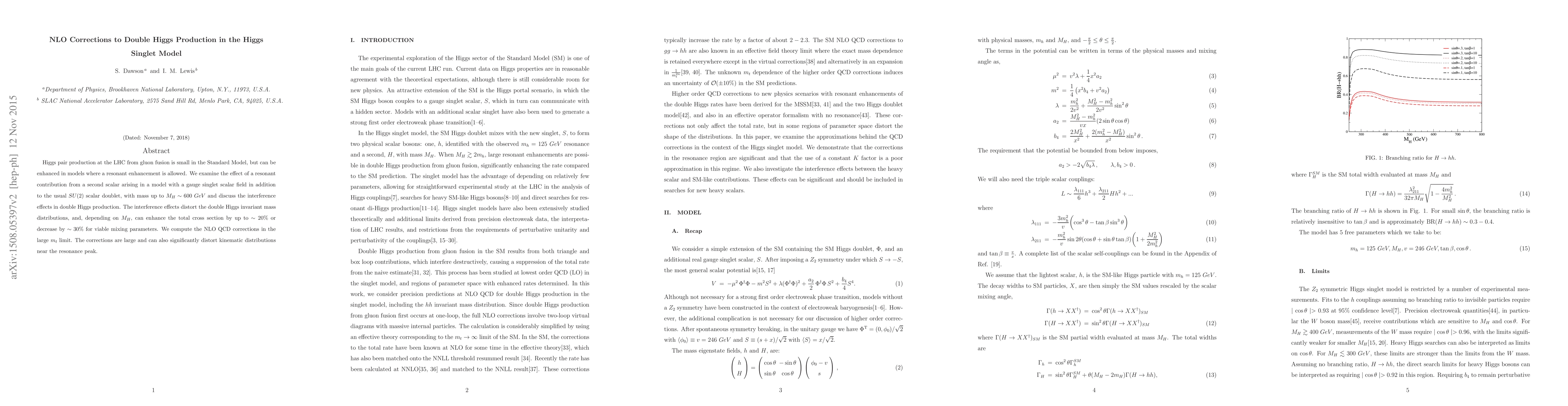 This paper investigates the impact of a second scalar in the Higgs Singlet Model on double Higgs production at the LHC, focusing on resonant contributions and interference effects. It computes next-to-leading order (NLO) QCD corrections in the large top mass limit, revealing significant distortions in kinematic distributions near the resonance peak.