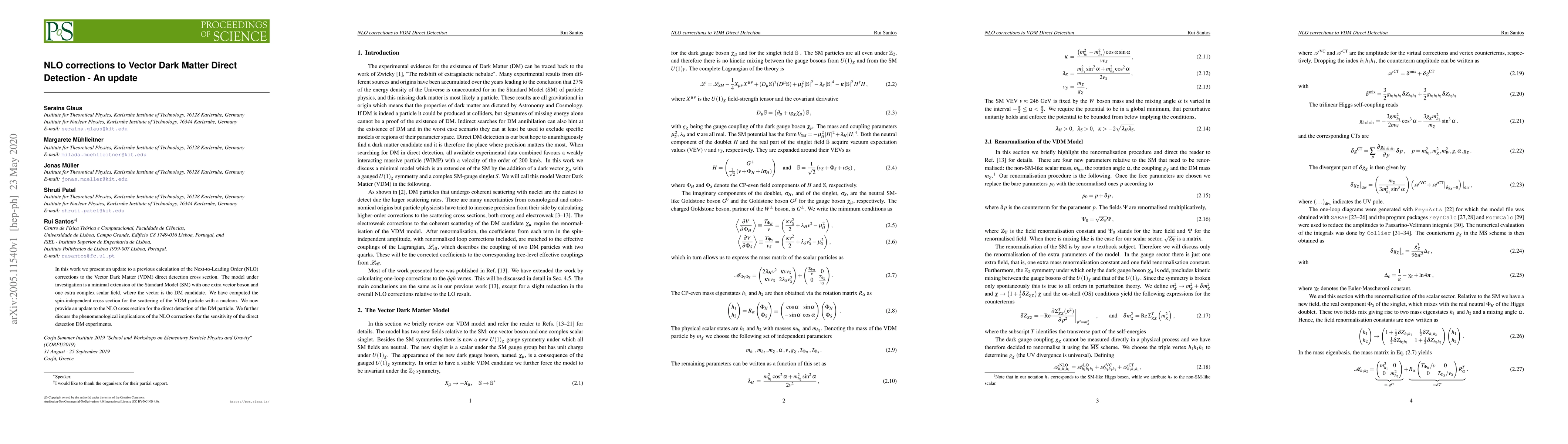 This paper updates the Next-to-Leading Order (NLO) corrections to the direct detection cross section for Vector Dark Matter (VDM) in a minimal Standard Model extension. It computes the spin-independent scattering cross section for VDM with nucleons and discusses the phenomenological implications for the sensitivity of direct detection experiments.