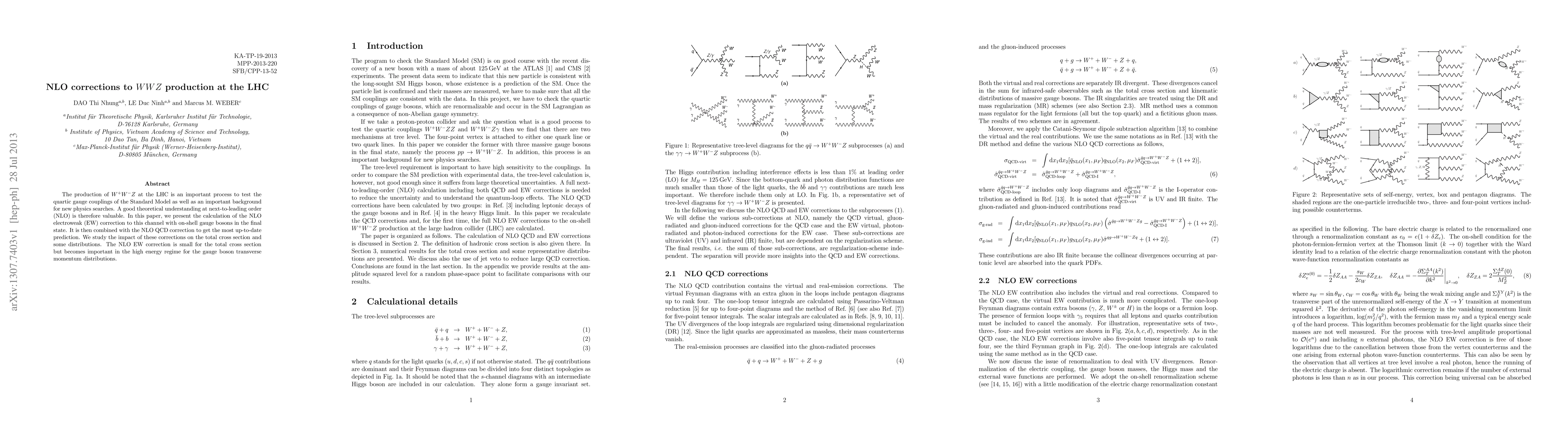 This paper calculates the next-to-leading order (NLO) electroweak correction to WWZ production at the LHC, combining it with NLO QCD corrections for an improved theoretical prediction. While the NLO EW correction is minor for the total cross section, it significantly impacts the high-energy regime of gauge boson transverse momentum distributions.