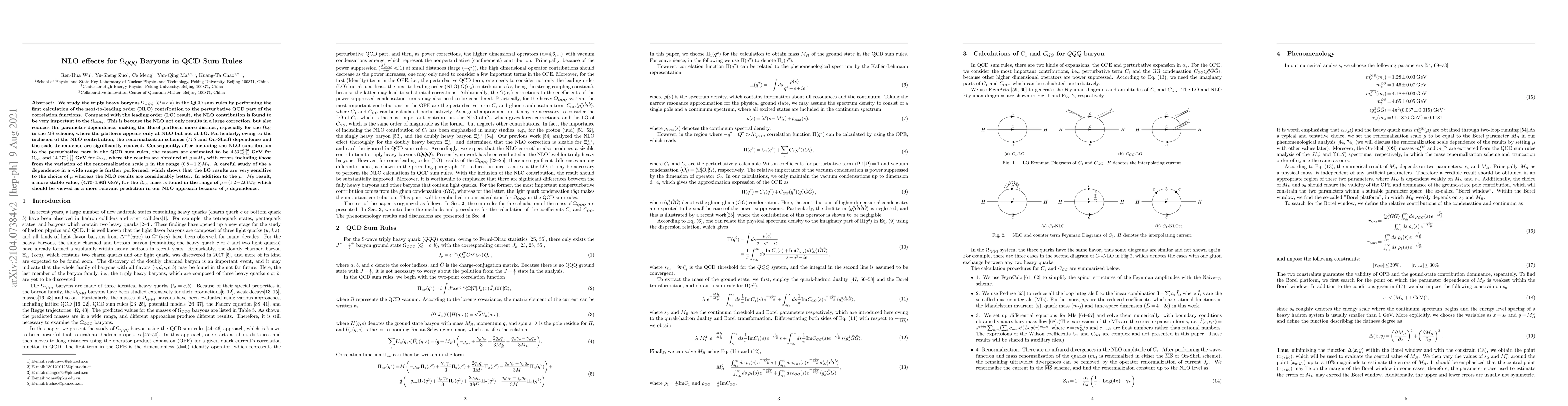 We study the triply heavy baryons $\Omega_{QQQ}$ $(Q=c, b)$ in the QCD sum rules by performing the first calculation of the next-to-leading order (NLO) contribution to the perturbative QCD part of the correlation functions. Compared with the leading order (LO) result, the NLO contribution is found to be very important to the $\Omega_{QQQ}$. This is because the NLO not only results in a large correction, but also reduces the parameter dependence, making the Borel platform more distinct, especially for the $\Omega_{bbb}$ in the $\overline{\rm{MS}}$ scheme, where the platform appears only at NLO but not at LO. Particularly, owing to the inclusion of the NLO contribution, the renormalization schemes ($\bar {MS}$ and On-Shell) dependence and the scale dependence are significantly reduced. Consequently, after including the NLO contribution to the perturbative part in the QCD sum rules, the masses are estimated to be $4.53^{+0.26}_{-0.11}$ GeV for $\Omega_{ccc}$ and $14.27^{+0.33}_{-0.32}$ GeV for $\Omega_{bbb}$, where the results are obtained at $\mu=M_B$ with errors including those from the variation of the renormalization scale $\mu$ in the range $(0.8-1.2) M_B$. A careful study of the $\mu$ dependence in a wide range is further performed, which shows that the LO results are very sensitive to the choice of $\mu$ whereas the NLO results are considerably better. In addition to the $\mu=M_B$ result, a more stable value, (4.75-4.80) GeV, for the $\Omega_{ccc}$ mass is found in the range of $\mu=(1.2-2.0) M_B$, which should be viewed as a more relevant prediction in our NLO approach because of $\mu$ dependence.