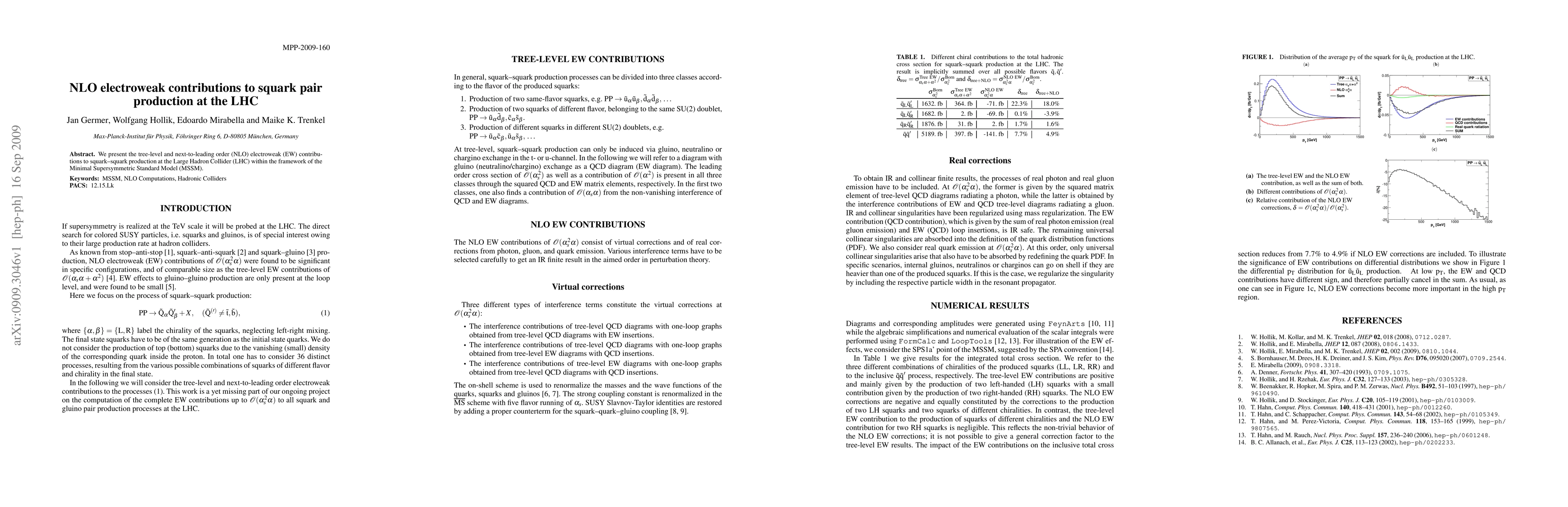 This paper investigates both tree-level and next-to-leading order electroweak contributions to squark pair production at the LHC, providing essential insights within the Minimal Supersymmetric Standard Model framework. The results enhance the understanding of supersymmetric processes at high-energy colliders.
