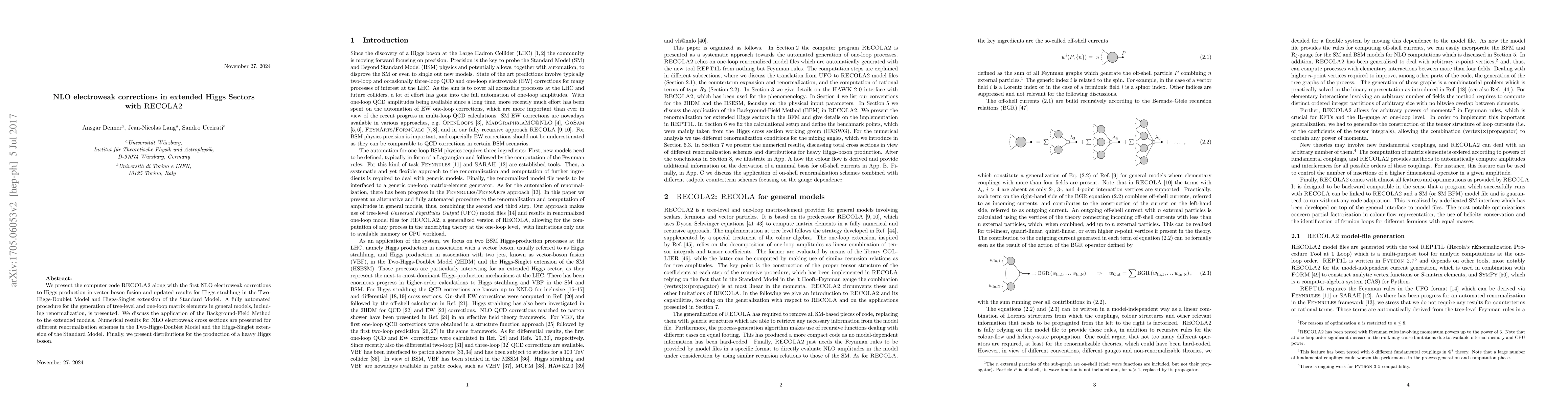This paper introduces RECOLA2, a computer code for generating NLO electroweak corrections in extended Higgs sectors, including the Two-Higgs-Doublet Model and Higgs-Singlet extensions. It presents numerical results for Higgs production processes and discusses the application of the Background-Field Method in these models.