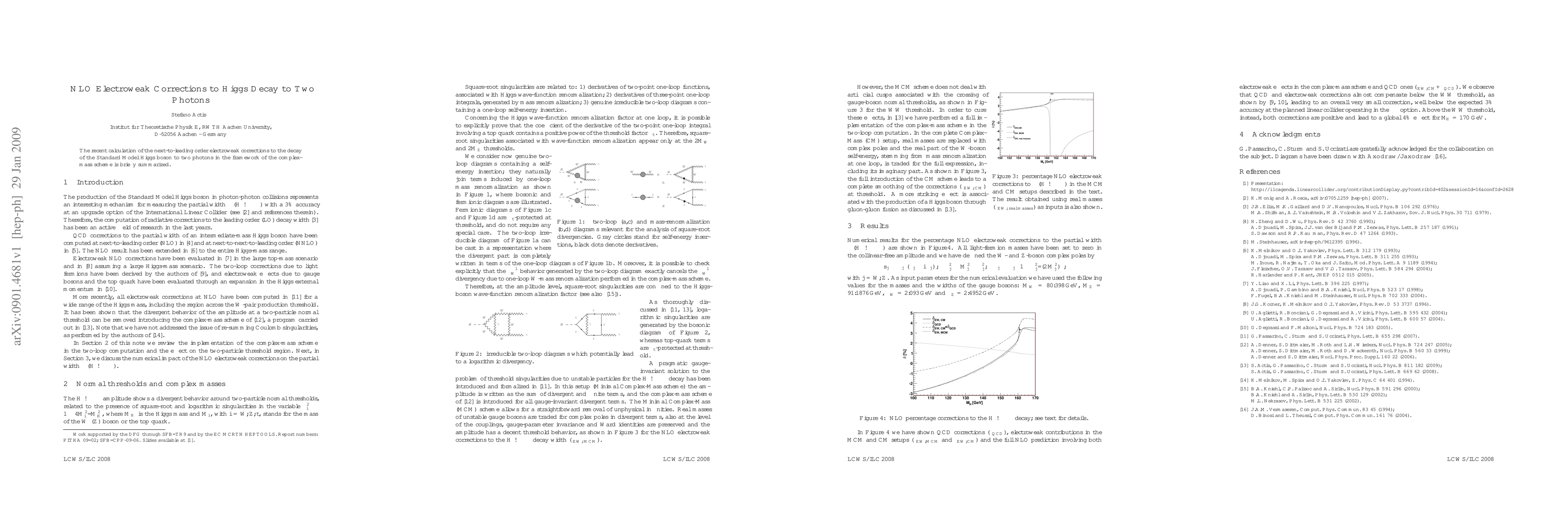 The recent calculation of the next-to-leading order electroweak corrections to the decay of the Standard Model Higgs boson to two photons in the framework of the complex-mass scheme is briefly summarized.