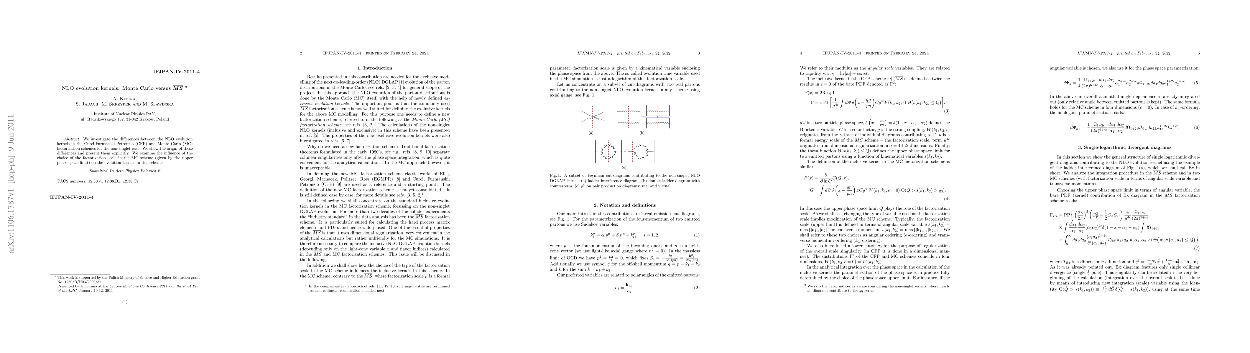 We investigate the differences between the NLO evolution kernels in the Curci-Furmanski-Petronzio (CFP) and Monte Carlo (MC) factorization schemes for the non-singlet case. We show the origin of these differences and present them explicitly. We examine the influence of the choice of the factorization scale in the MC scheme (given by the upper phase space limit) on the evolution kernels in this scheme.