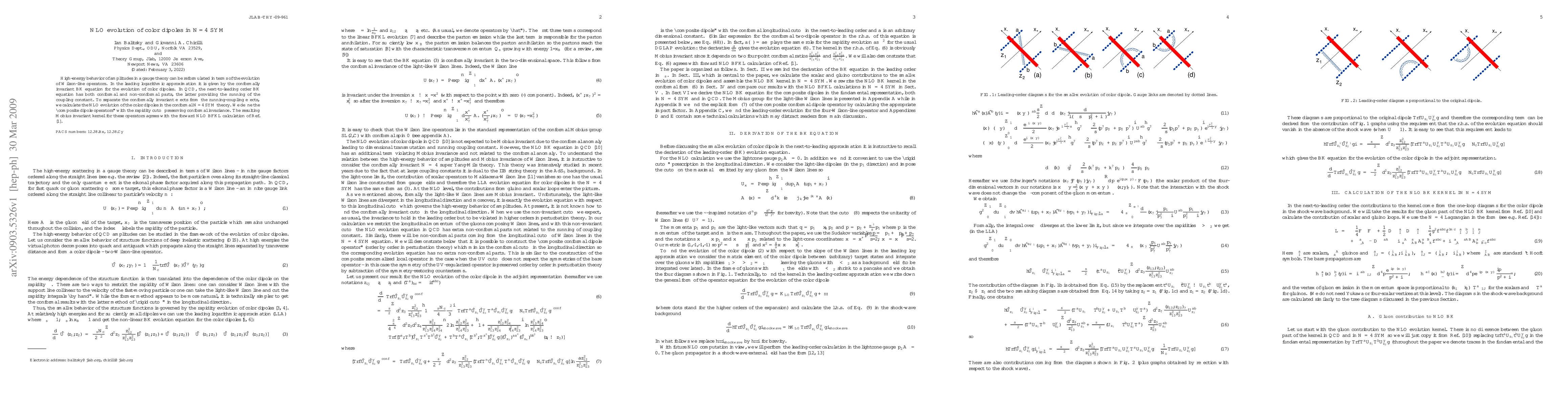 This paper investigates the next-to-leading order (NLO) evolution of color dipoles in conformal N=4 supersymmetric Yang-Mills (SYM) theory, using composite dipole operators that preserve conformal invariance. The study finds that the resulting Möbius invariant kernel matches the forward NLO BFKL calculation.