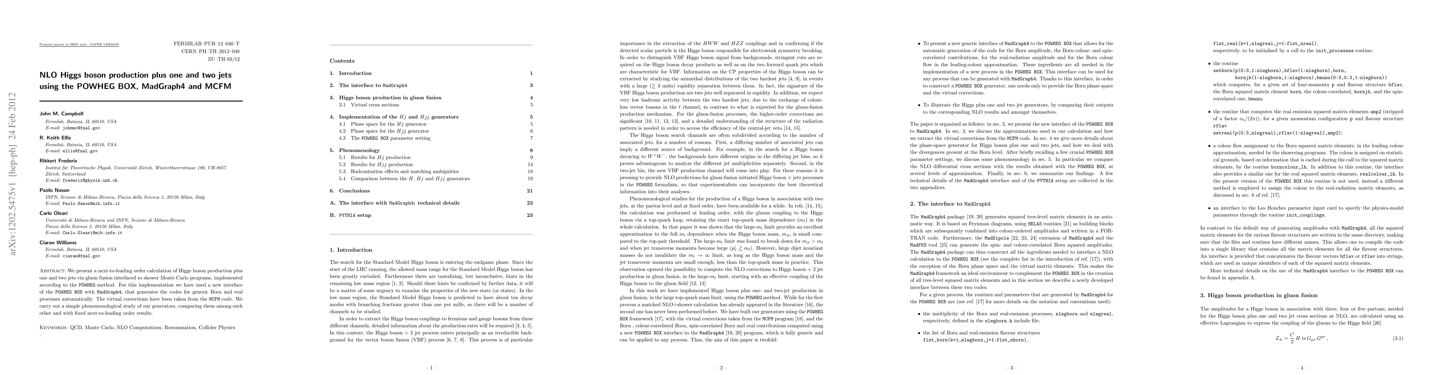 This research paper presents a next-to-leading order calculation of Higgs boson production with one and two jets using the POWHEG BOX, MadGraph4, and MCFM. It provides a new interface for interfacing these programs to improve calculations.