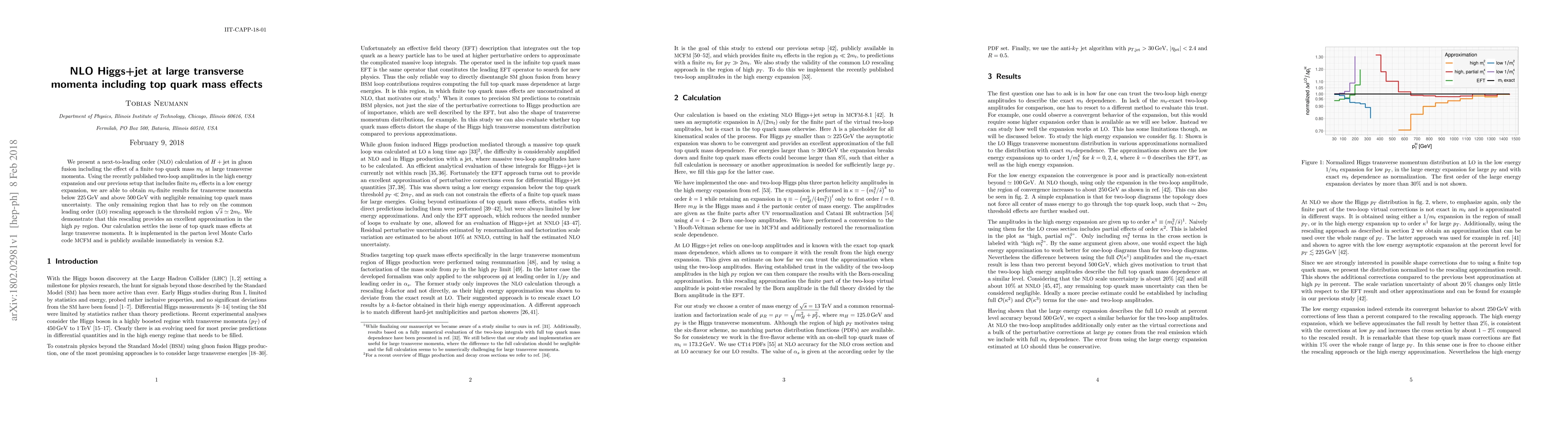This paper presents a next-to-leading order calculation of Higgs plus jet production in gluon fusion, incorporating finite top quark mass effects at large transverse momenta. The study provides precise results for momenta above 500 GeV and below 225 GeV, settling the issue of top quark mass effects in the high $p_T$ region.