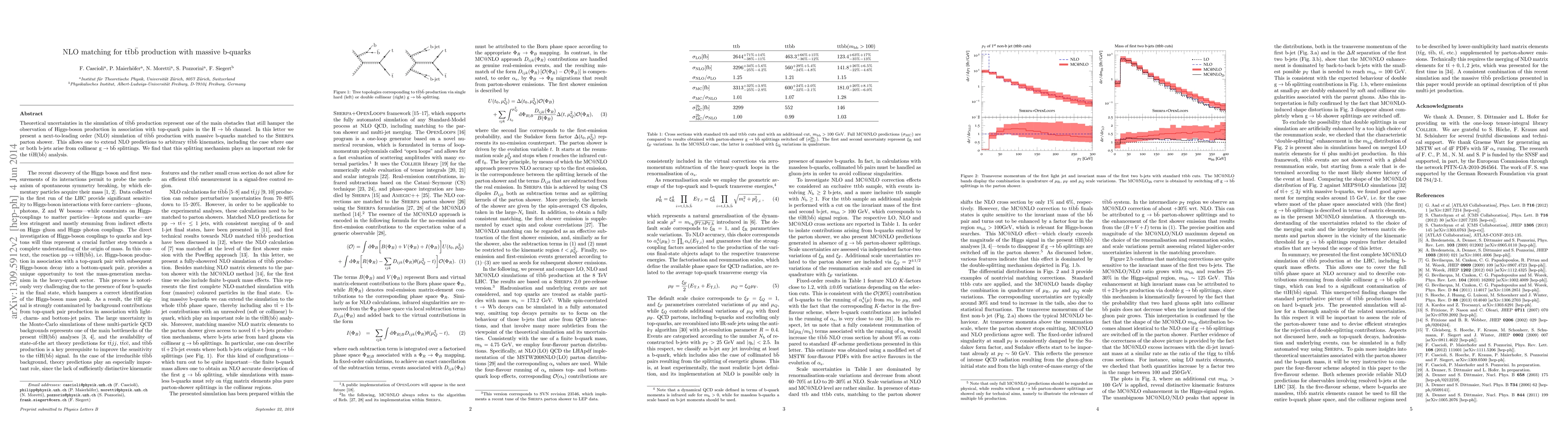 Researchers developed a new method to simulate ttbb production with massive b-quarks using NLO matching, enabling predictions at arbitrary kinematics and highlighting the impact of collinear splitting on Higgs-boson analysis.