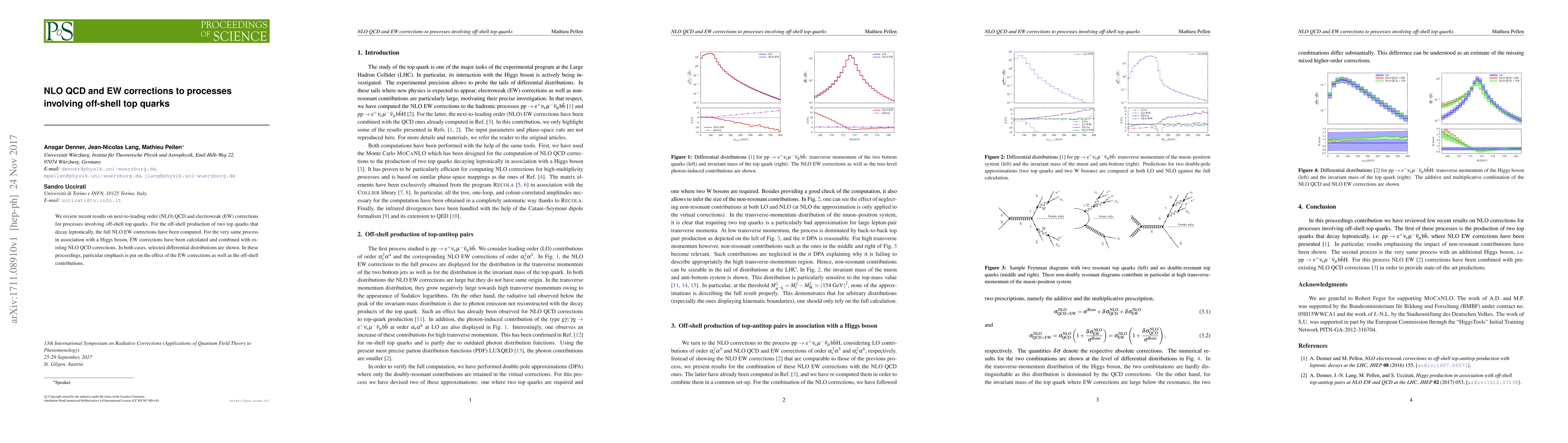 We review recent results on next-to-leading order (NLO) QCD and electroweak (EW) corrections for processes involving off-shell top quarks. For the off-shell production of two top quarks that decay leptonically, the full NLO EW corrections have been computed. For the very same process in association with a Higgs boson, EW corrections have been calculated and combined with existing NLO QCD corrections. In both cases, selected differential distributions are shown. In these proceedings, particular emphasis is put on the effect of the EW corrections as well as the off-shell contributions.