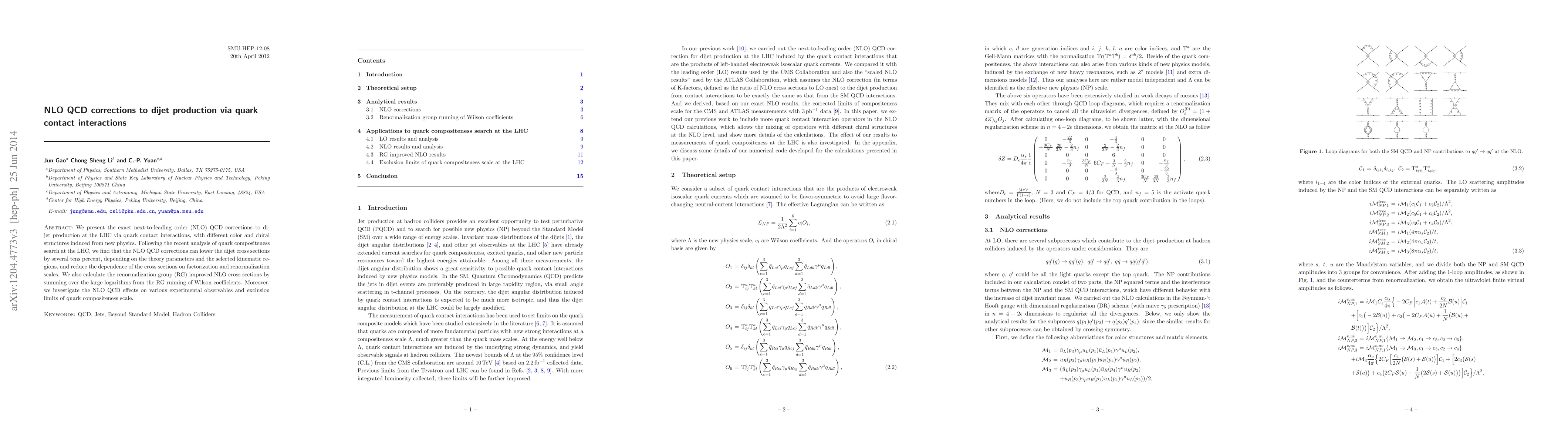 This paper presents the exact next-to-leading order (NLO) QCD corrections to dijet production at the LHC through quark contact interactions, revealing that these corrections can reduce dijet cross sections by several tens percent. The study also examines the impact of these corrections on experimental observables and the exclusion limits for quark compositeness.