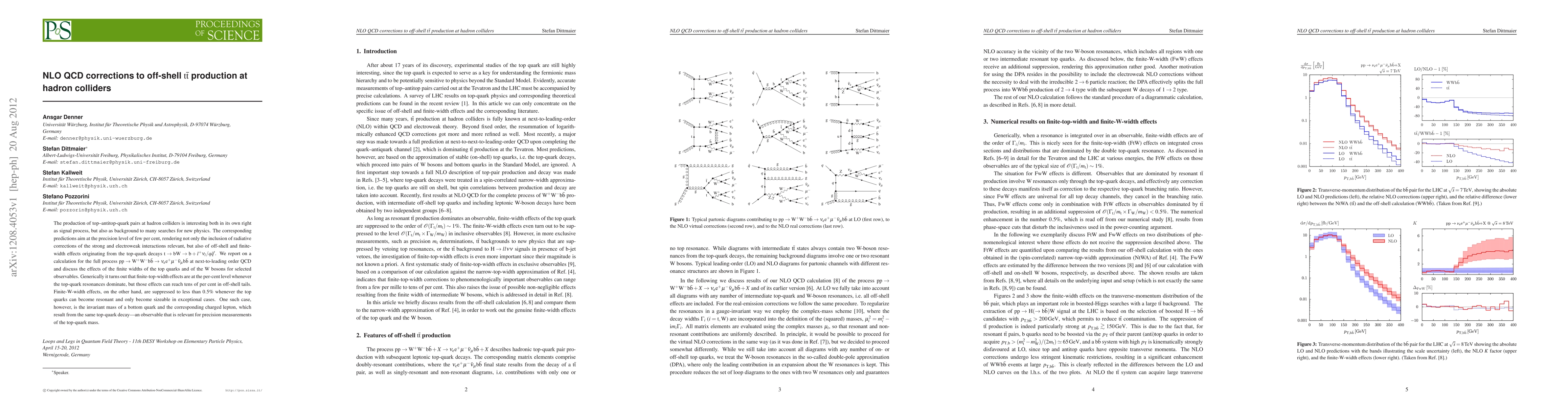 The production of top-antitop-quark pairs at hadron colliders is interesting both in its own right as signal process, but also as background to many searches for new physics. The corresponding predictions aim at the precision level of few per cent, rendering not only the inclusion of radiative corrections of the strong and electroweak interactions relevant, but also of off-shell and finite-width effects originating from the top-quark decays t -> b W -> b l \nu_l / qq'. We report on a calculation for the full process pp -> W^+ W^- b \bar{b} -> \nu_e e^+ \mu^- \nu_\mu b \bar{b} at next-to-leading order QCD and discuss the effects of the finite widths of the top quarks and of the W bosons for selected observables. Generically it turns out that finite-top-width effects are at the per-cent level whenever the top-quark resonances dominate, but those effects can reach tens of per cent in off-shell tails. Finite-W-width effects, on the other hand, are suppressed to less than 0.5% whenever the top quarks can become resonant and only become sizeable in exceptional cases. One such case, however, is the invariant mass of a bottom quark and the corresponding charged lepton, which result from the same top-quark decay - an observable that is relevant for precision measurements of the top-quark mass.