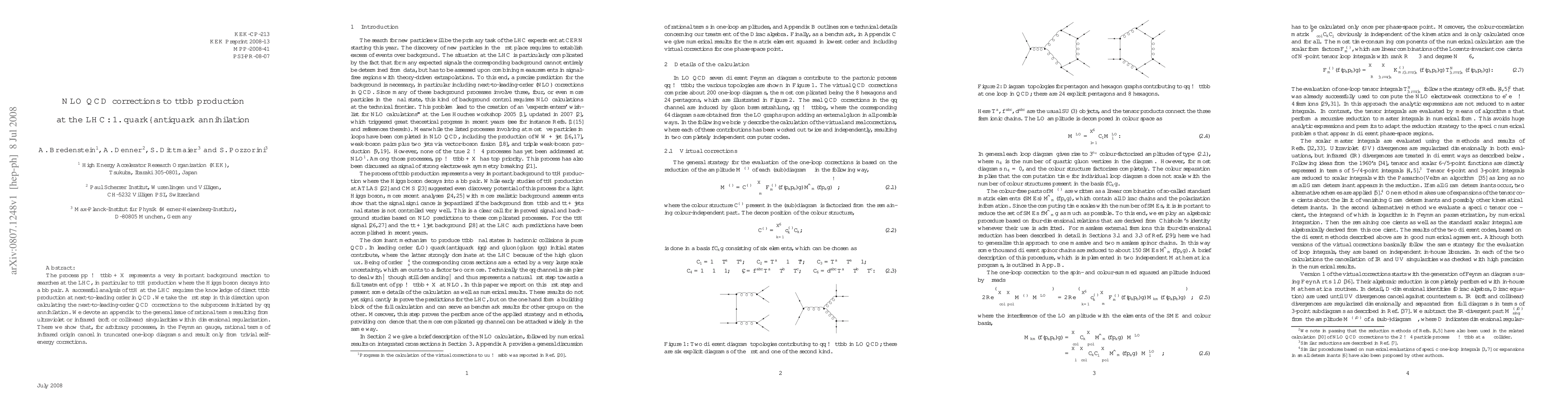This paper calculates next-to-leading order QCD corrections for the quark-antiquark annihilation process producing top anti-top and bottom anti-bottom pairs, crucial for understanding backgrounds in top anti-top Higgs production at the LHC. An appendix discusses the cancellation of rational infrared terms in truncated one-loop diagrams.