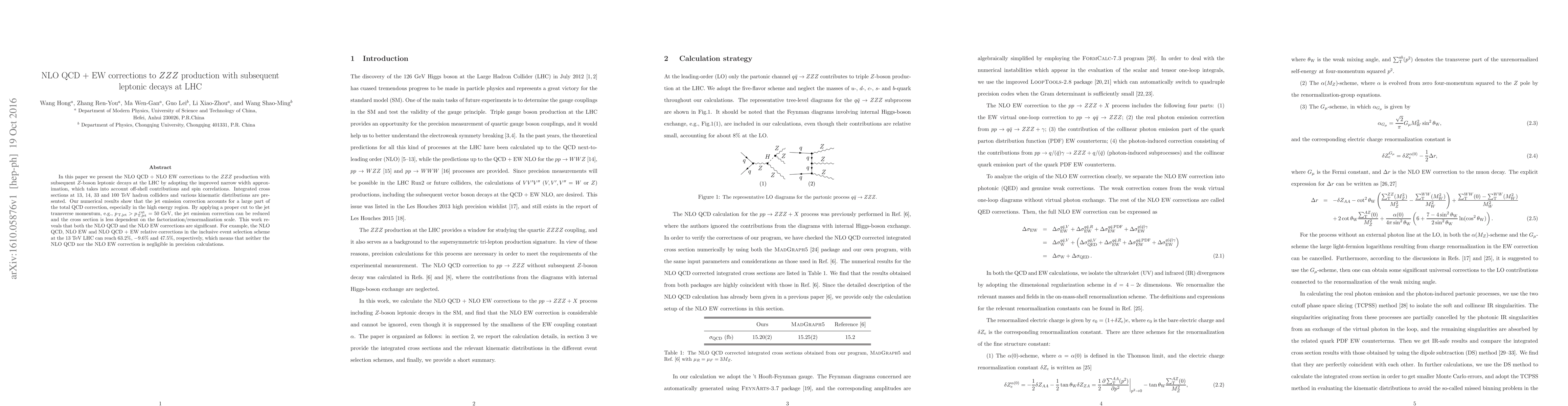 This paper presents NLO QCD + NLO EW corrections for $ZZZ$ production at the LHC, showing significant contributions from jet emission corrections. The study highlights the importance of both NLO QCD and NLO EW corrections, with relative corrections reaching up to 63.2% for NLO QCD at 13 TeV.
