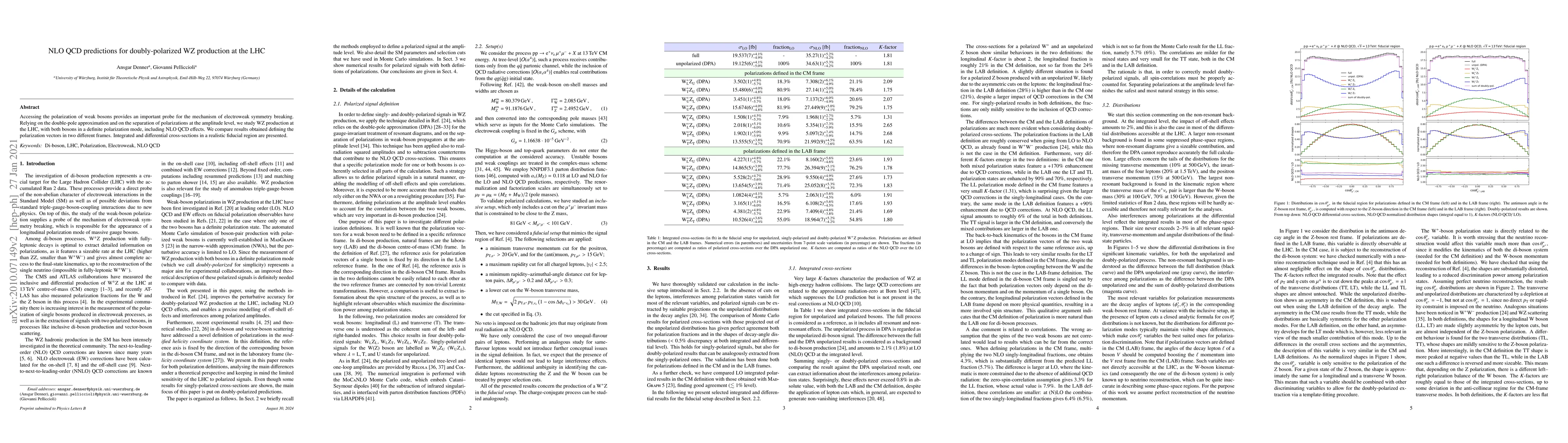 This paper investigates WZ production at the LHC with both bosons in specific polarization states, incorporating next-to-leading order (NLO) QCD effects. It compares results using different frames for defining polarization vectors and presents integrated and differential cross-sections within a realistic fiducial region.