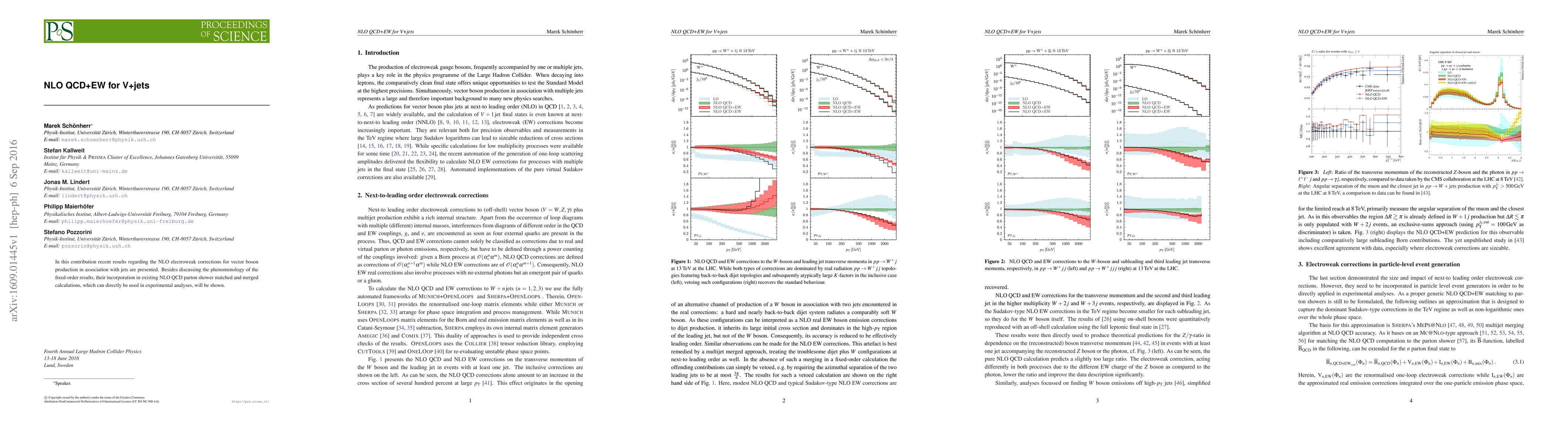 This paper presents recent NLO electroweak correction results for vector boson production with jets, demonstrating their integration with existing NLO QCD parton shower matched and merged calculations for direct use in experimental analyses.