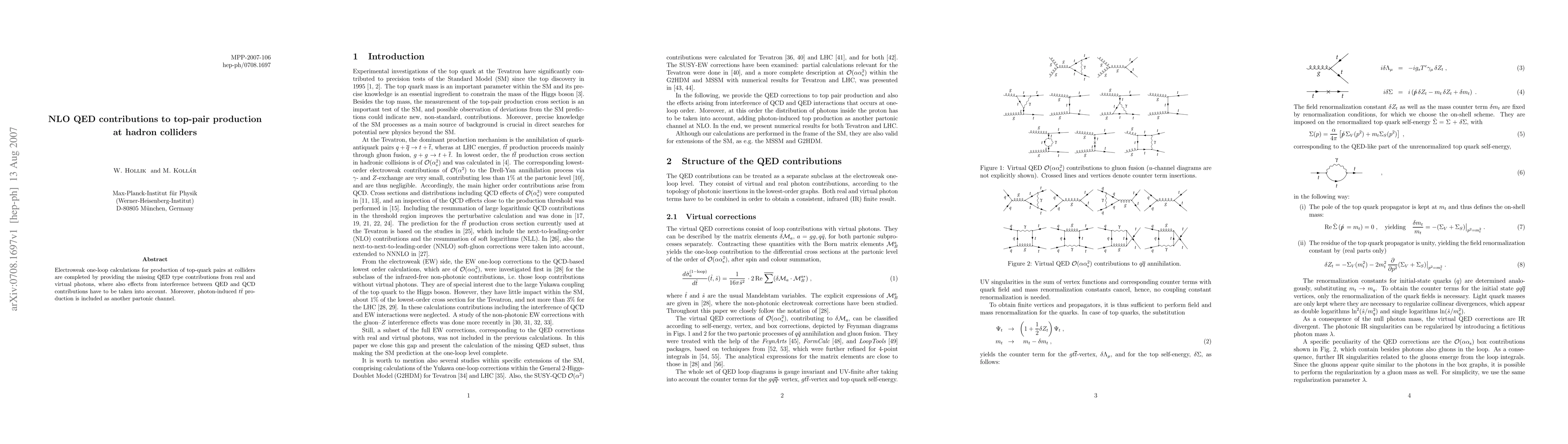 Electroweak one-loop calculations for production of top-quark pairs at colliders are completed by providing the missing QED type contributions from real and virtual photons, where also effects from interference between QED and QCD contributions have to be taken into account. Moreover, photon-induced $t \bar{t}$ production is included as another partonic channel.