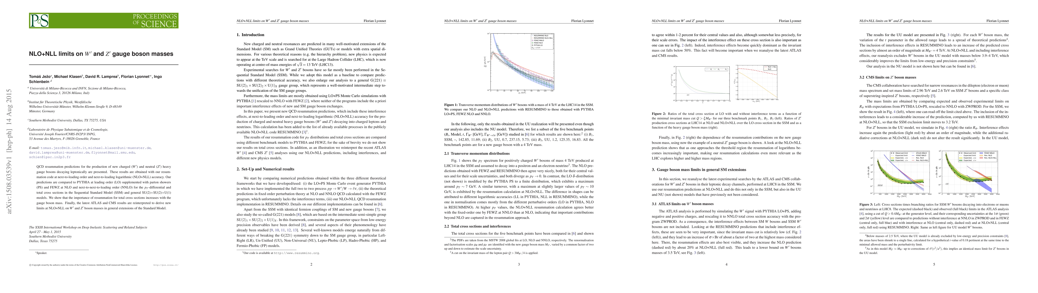 QCD resummation predictions for the production of new charged ($W'$) and neutral ($Z'$) heavy gauge bosons decaying leptonically are presented. These results are obtained with our resummation code at next-to-leading order and next-to-leading logarithmic (NLO+NLL) accuracy. Our predictions are compared to PYTHIA at leading order (LO) supplemented with parton showers (PS) and FEWZ at NLO and next-to-next-to-leading order (NNLO) for the $p_T$-differential and total cross sections in the Sequential Standard Model (SSM) and general SU(2)$\times$SU(2)$\times$U(1) models. We show that the importance of resummation for total cross sections increases with the gauge boson mass. Finally, the latest ATLAS and CMS results are reinterpreted to derive new limits at NLO+NLL on $W'$ and $Z'$ boson masses in general extensions of the Standard Model.