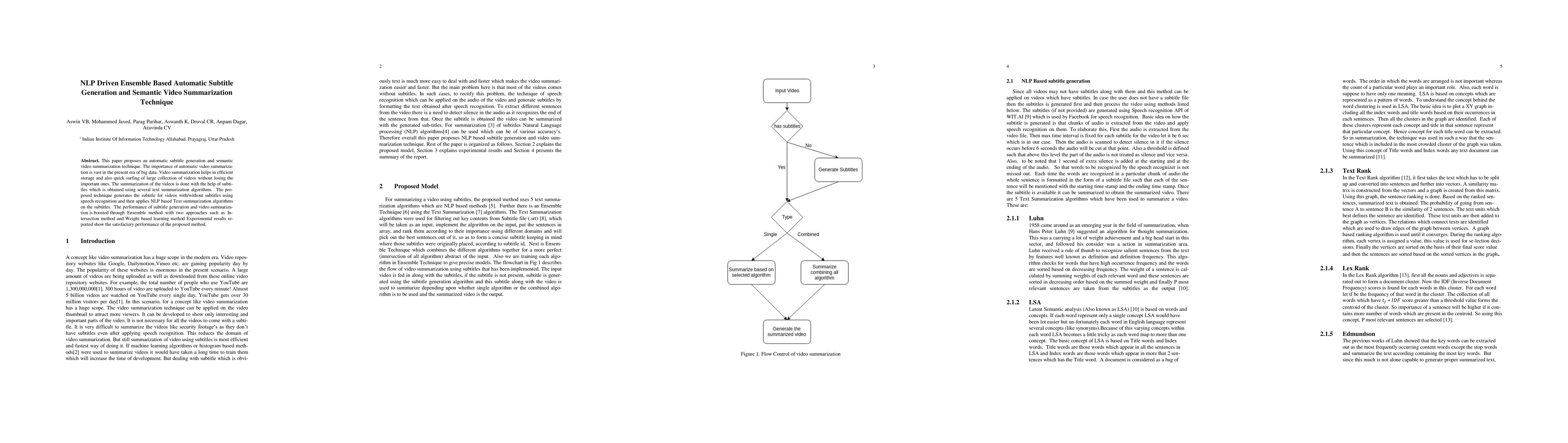 This paper introduces an NLP-driven ensemble method for automatic subtitle generation and semantic video summarization, leveraging speech recognition and text summarization algorithms, and employing ensemble techniques to enhance performance. Experimental results demonstrate the effectiveness of the proposed technique.