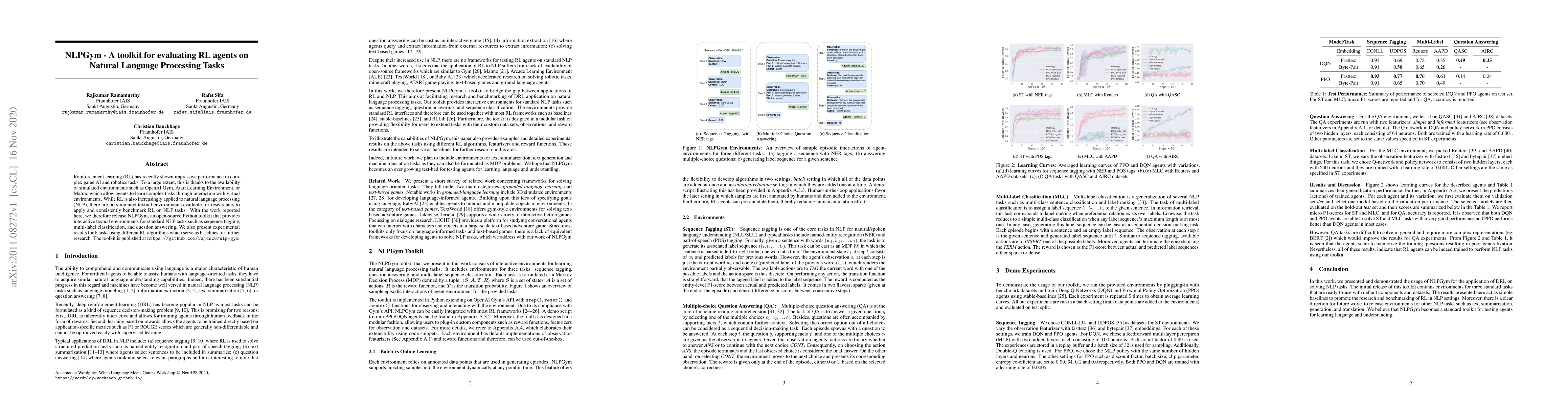 Researchers developed NLPGym, an open-source toolkit that provides simulated textual environments for natural language processing tasks, enabling reinforcement learning on NLP tasks for the first time.
