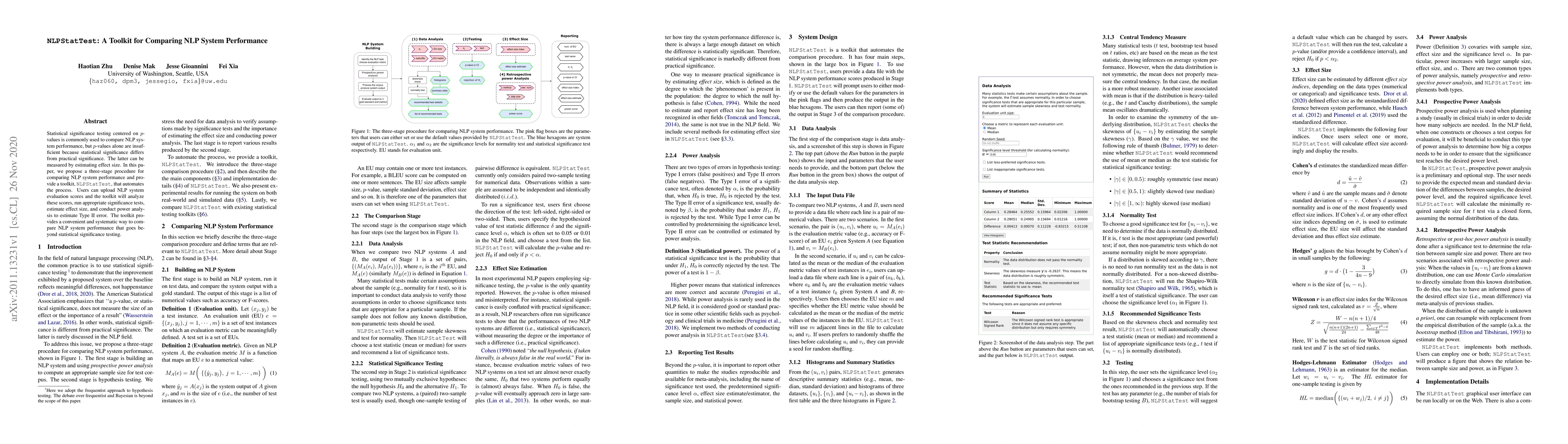 The paper introduces NLPStatTest, a toolkit for comparing NLP system performance by automating statistical significance testing, effect size estimation, and power analysis. It aims to provide a more comprehensive evaluation beyond mere p-value analysis.