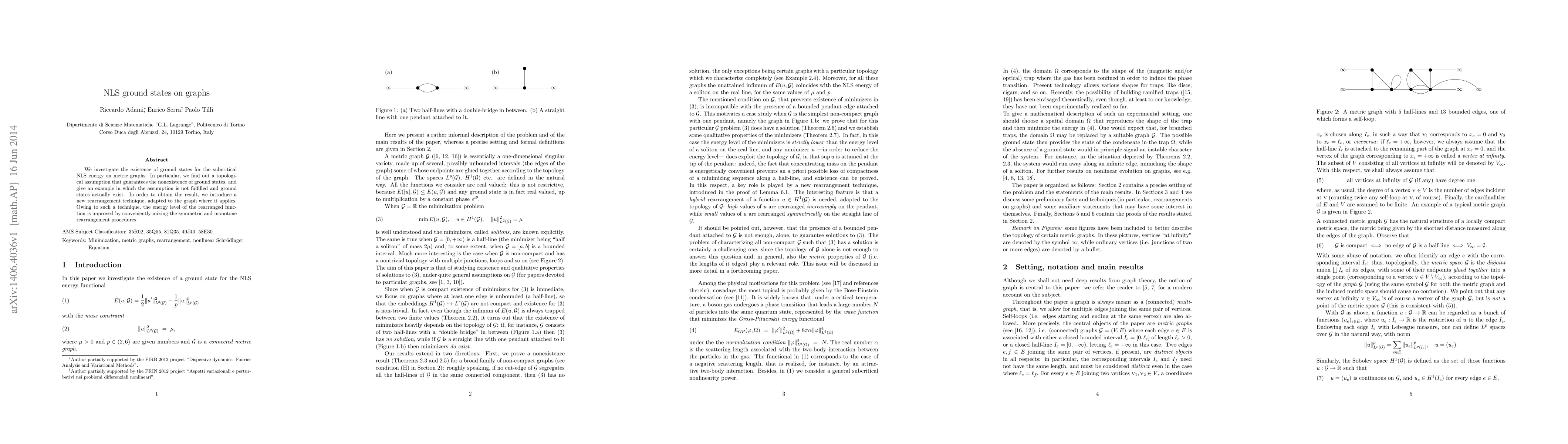 We investigate the existence of ground states for the subcritical NLS energy on metric graphs. In particular, we find out a topological assumption that guarantees the nonexistence of ground states, and give an example in which the assumption is not fulfilled and ground states actually exist. In order to obtain the result, we introduce a new rearrangement technique, adapted to the graph where it applies. Owing to such a technique, the energy level of the rearranged function is improved by conveniently mixing the symmetric and monotone rearrangement procedures.
