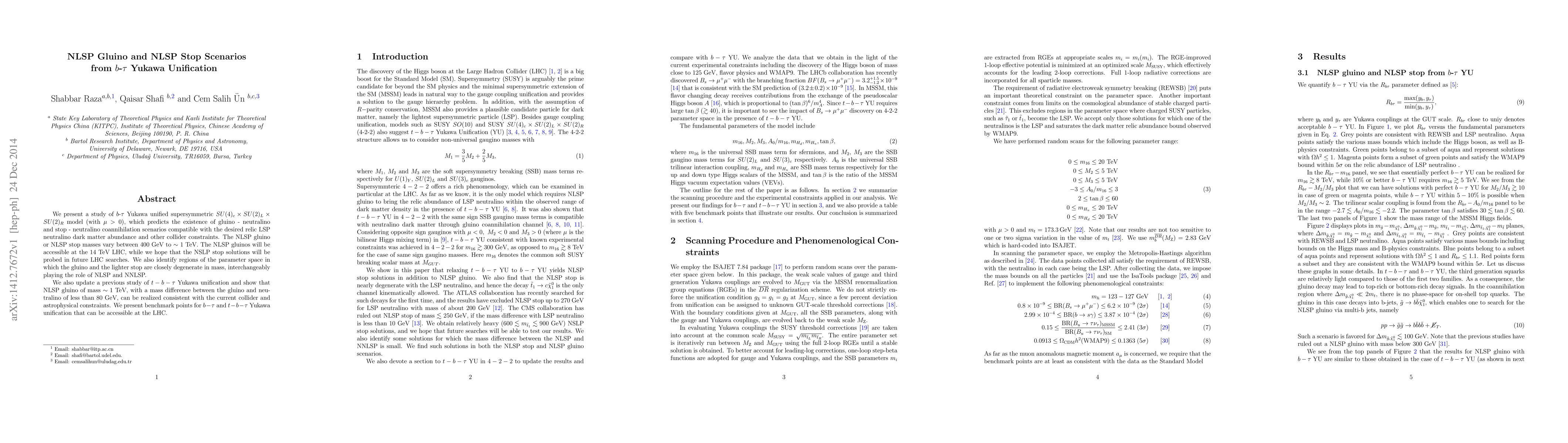 We present a study of b-tau Yukawa unified supersymmetric SU(4)_c x SU(2)_L x SU(2)_R model (with mu > 0), which predicts the existence of gluino - neutralino and stop - neutralino coannihilation scenarios compatible with the desired relic LSP neutralino dark matter abundance and other collider constraints. The NLSP gluino or NLSP stop masses vary between 400 GeV to ~ 1 TeV. The NLSP gluinos will be accessible at the 14 TeV LHC, while we hope that the NSLP stop solutions will be probed in future LHC searches. We also identify regions of the parameter space in which the gluino and the lighter stop are closely degenerate in mass, interchangeably playing the role of NLSP and NNLSP. We also update a previous study of t-b-tau Yukawa unification and show that NLSP gluino of mass ~ 1 TeV, with a mass difference between the gluino and neutralino of less than 80 GeV, can be realized consistent with the current collider and astrophysical constraints. We present benchmark points for b-tau and t-b-tau Yukawa unification that can be accessible at the LHC.