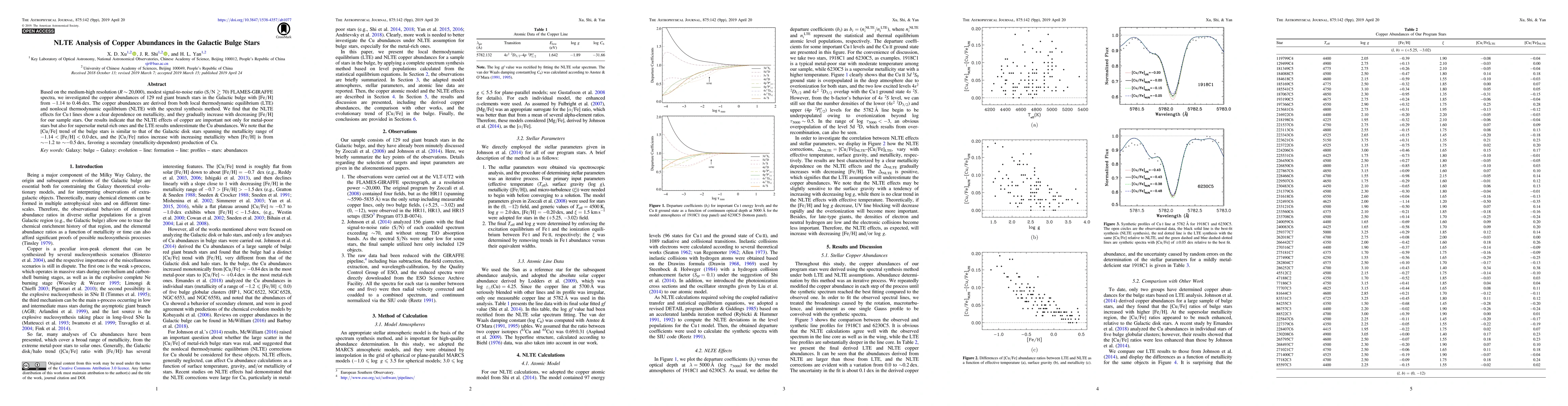 This study analyzes copper abundances in 129 Galactic bulge red giant stars using NLTE and LTE methods, revealing that NLTE effects significantly impact Cu abundances, especially in metal-rich stars, and that Cu production is likely secondary and metallicity-dependent.