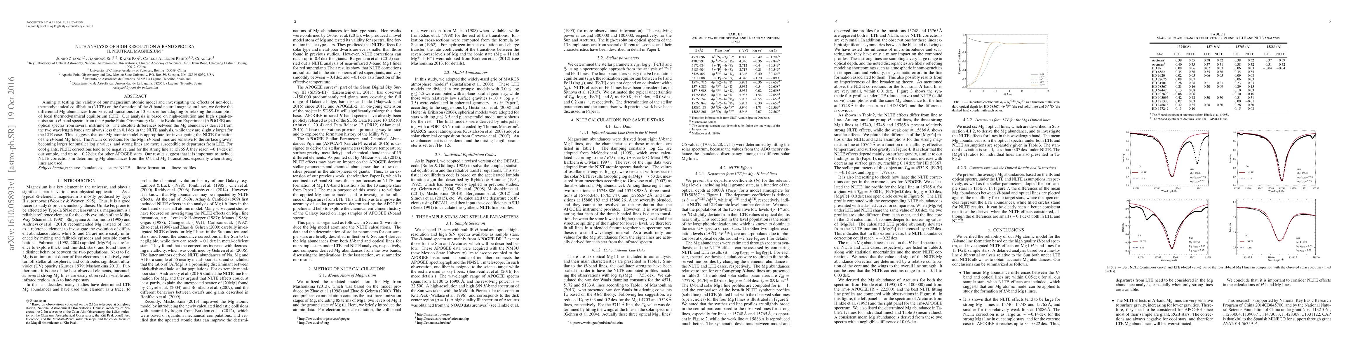 This study tests the validity of a magnesium atomic model and examines NLTE effects on H-band neutral magnesium lines using high-resolution spectra. NLTE analysis shows Mg abundances differing by less than 0.1 dex across bands, indicating the model's appropriateness. NLTE corrections are significant for strong lines and vary with surface gravity, especially for cool giants.