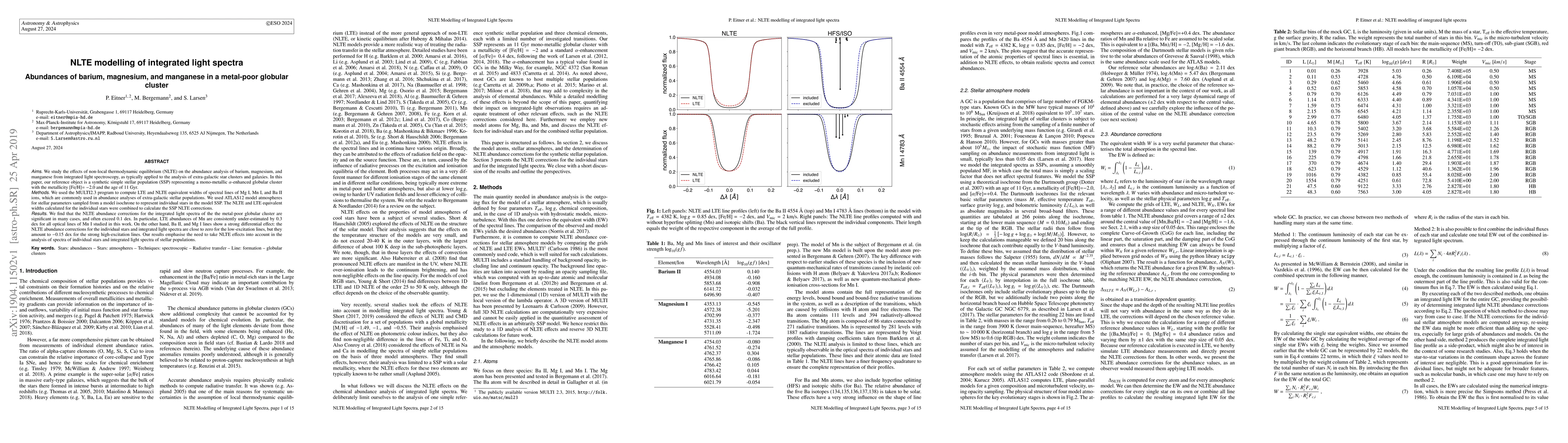 This paper investigates the impact of non-local thermodynamic equilibrium (NLTE) on the abundance analysis of barium, magnesium, and manganese in a metal-poor globular cluster using integrated light spectra. The study finds significant NLTE corrections, especially for manganese, which is consistently underestimated by 0.3 dex, highlighting the necessity of considering NLTE effects in stellar population analyses.