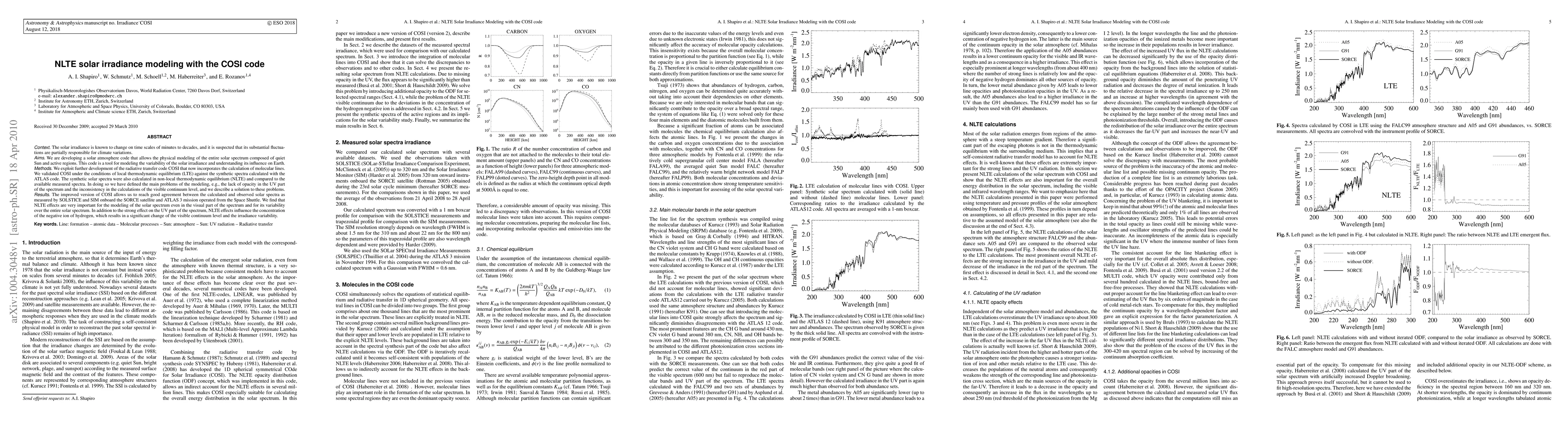 Context. The solar irradiance is known to change on time scales of minutes to decades, and it is suspected that its substantial fluctua- tions are partially responsible for climate variations. Aims. We are developing a solar atmosphere code that allows the physical modeling of the entire solar spectrum composed of quiet Sun and active regions. This code is a tool for modeling the variability of the solar irradiance and understanding its influence on Earth. Methods. We exploit further development of the radiative transfer code COSI that now incorporates the calculation of molecular lines. We validated COSI under the conditions of local thermodynamic equilibrium (LTE) against the synthetic spectra calculated with the ATLAS code. The synthetic solar spectra were also calculated in non-local thermodynamic equilibrium (NLTE) and compared to the available measured spectra. In doing so we have defined the main problems of the modeling, e.g., the lack of opacity in the UV part of the spectrum and the inconsistency in the calculations of the visible continuum level, and we describe a solution to these problems. Results. The improved version of COSI allows us to reach good agreement between the calculated and observed solar spectra as measured by SOLSTICE and SIM onboard the SORCE satellite and ATLAS 3 mission operated from the Space Shuttle. We find that NLTE effects are very important for the modeling of the solar spectrum even in the visual part of the spectrum and for its variability over the entire solar spectrum. In addition to the strong effect on the UV part of the spectrum, NLTE effects influence the concentration of the negative ion of hydrogen, which results in a significant change of the visible continuum level and the irradiance variability.