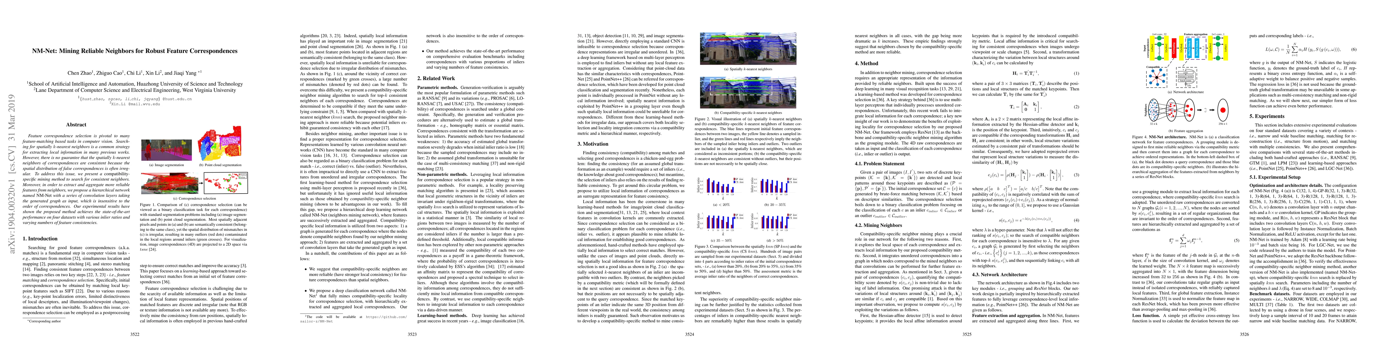 Feature correspondence selection is pivotal to many feature-matching based tasks in computer vision. Searching for spatially k-nearest neighbors is a common strategy for extracting local information in many previous works. However, there is no guarantee that the spatially k-nearest neighbors of correspondences are consistent because the spatial distribution of false correspondences is often irregular. To address this issue, we present a compatibility-specific mining method to search for consistent neighbors. Moreover, in order to extract and aggregate more reliable features from neighbors, we propose a hierarchical network named NM-Net with a series of convolution layers taking the generated graph as input, which is insensitive to the order of correspondences. Our experimental results have shown the proposed method achieves the state-of-the-art performance on four datasets with various inlier ratios and varying numbers of feature consistencies.