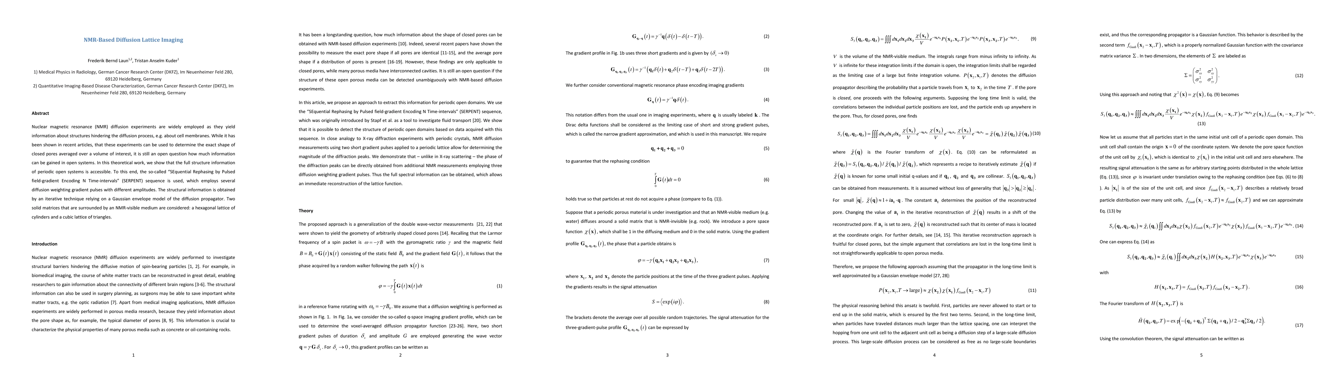 This paper explores NMR diffusion experiments using the SERPENT sequence to determine the structural information of periodic open systems, demonstrating its application on hexagonal and cubic lattices surrounded by an NMR-visible medium. The study employs an iterative technique based on a Gaussian envelope model to extract detailed structural data.