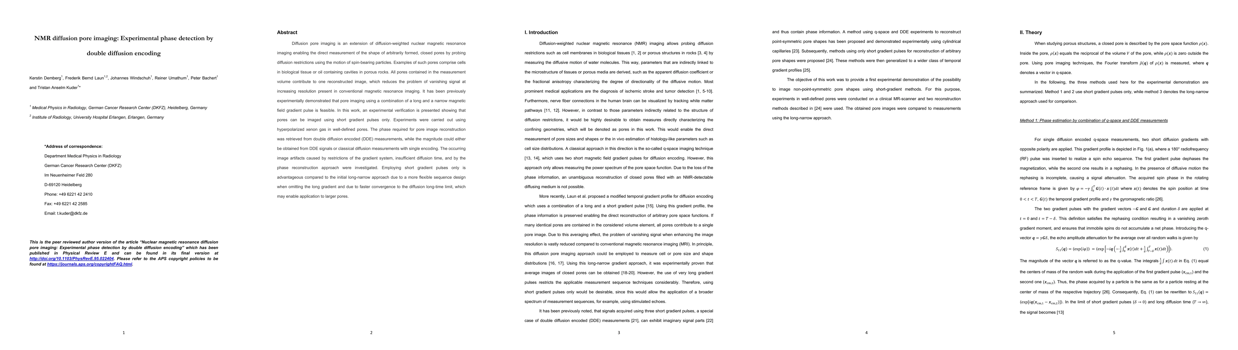 This paper presents an experimental verification of diffusion pore imaging using only short gradient pulses, enabling flexible sequence design and faster convergence. The phase detection for pore image reconstruction is achieved via double diffusion encoding, while both magnitude and phase artifacts are analyzed.