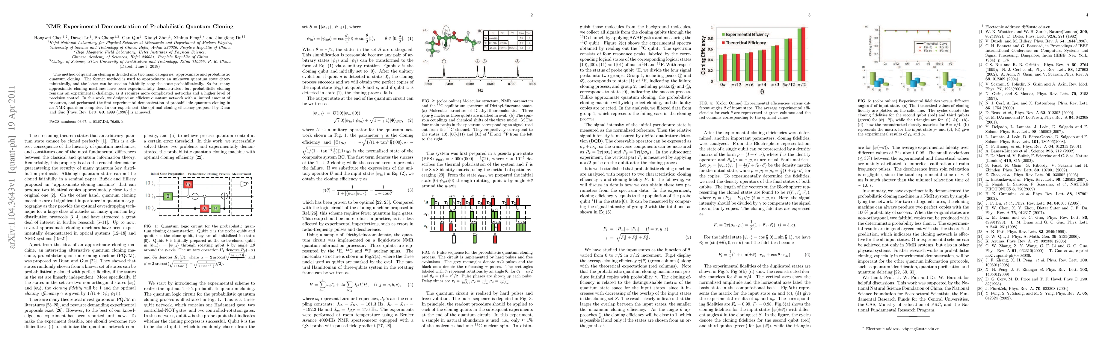 The research utilized an NMR quantum computer with a designed efficient quantum network to perform the first experimental demonstration of probabilistic quantum cloning, achieving optimal cloning efficiency as proposed by Duan and Guo.