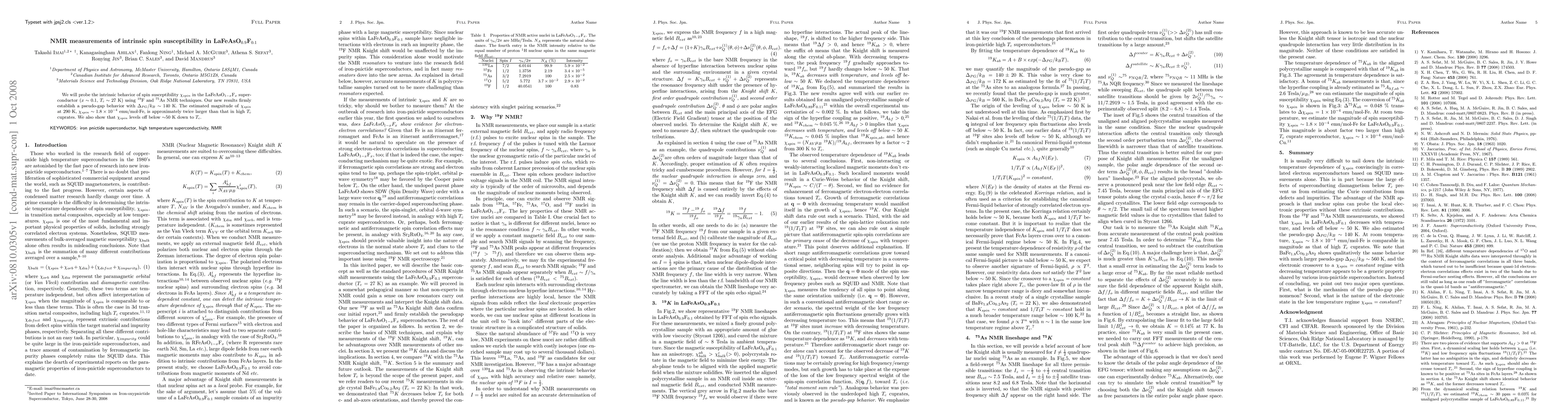 We will probe the intrinsic behavior of spin susceptibility chi_(spin) in the LaFeAsO(1-x)F(x) superconductor (x ~ 0.1, Tc ~ 27K) using 19-F and 75-As NMR techniques. Our new results firmly establish the pseudo-gap behavior with Delta_(PG)/kB ~ 140K. The estimated magnitude of chi_(spin) at 290K, ~1.8x10^(-4) [emu/mol-Fe], is approximately twice larger than that in high Tc cuprates. We also show that chi_(spin) levels off below ~50K down to Tc.