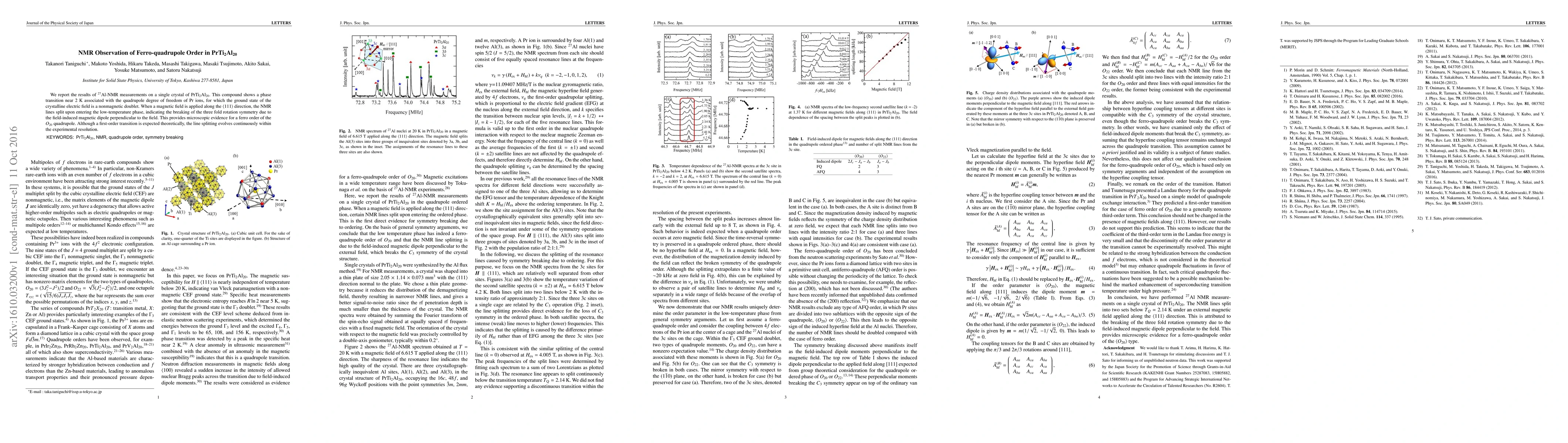 Researchers observed ferro-quadrupole order in PrTi2Al20 using 27Al-NMR measurements, indicating a phase transition near 2 K with a nonmagnetic doublet ground state of Pr ions. The findings show that applying a magnetic field breaks symmetry, providing evidence for ferro-quadrupole order.