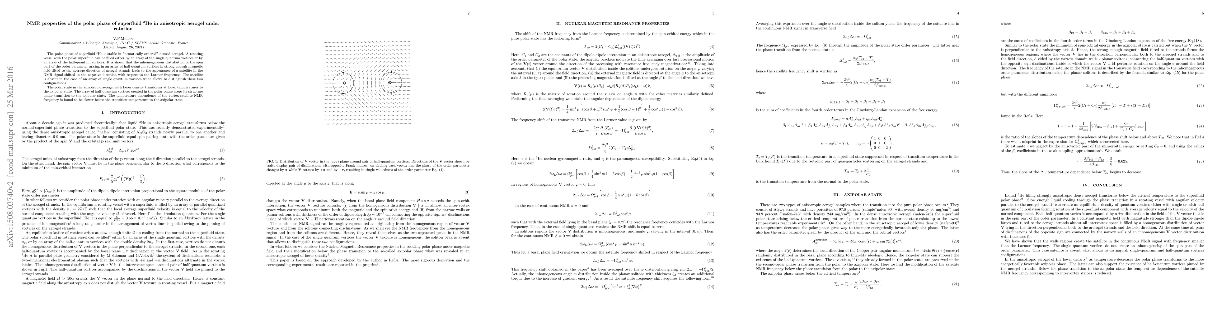 The polar phase of superfluid $^3$He is stable in "nematically ordered" densed aerogel. A rotating vessel with the polar superfluid can be filled either by an array of the single quantum vortices or by an array of the half-quantum vortices. It is shown that the inhomogeneous distribution of the spin part of the order parameter arising in an array of half-quantum vortices in strong enough magnetic field tilted to the average direction of aerogel strands leads to the appearance of a satellite in the NMR signal shifted in the negative direction with respect to the Larmor frequency. The satellite is absent in the case of an array of single quantum vortices what allows to distinguish these two configurations. The polar state in the anisotropic aerogel with lower density transforms at lower temperatures to the axipolar state. The array of half-quantum vortices created in the polar phase keeps its structure under transition to the axipolar state. The temperature dependence of the vortex-satellite NMR frequency is found to be slower below the transition temperature to the axipolar state.
